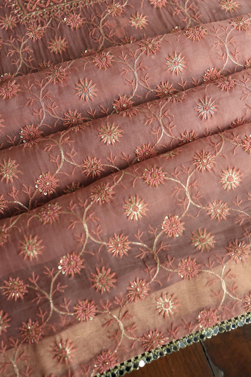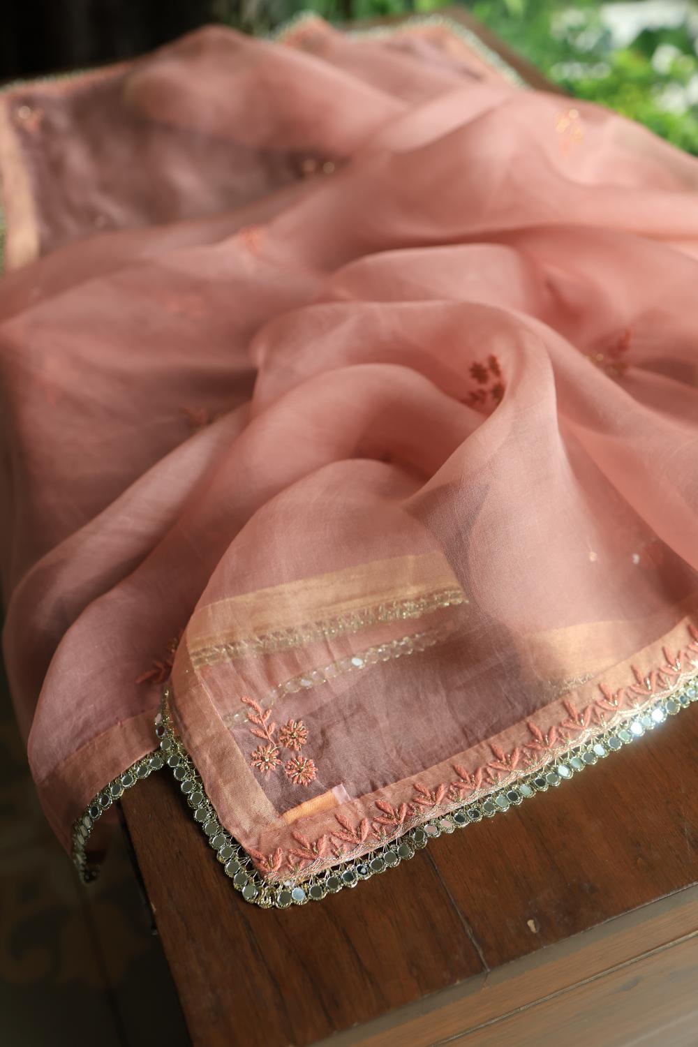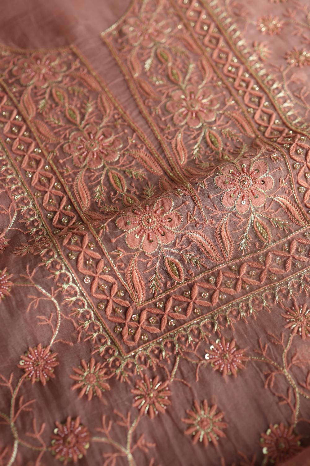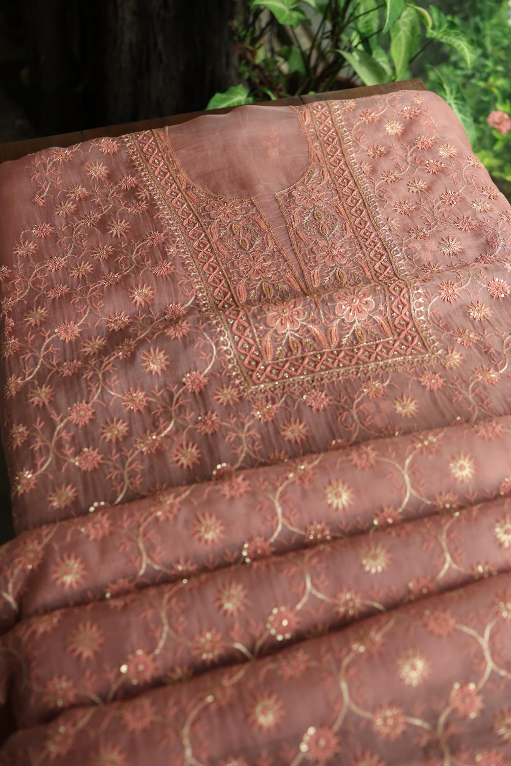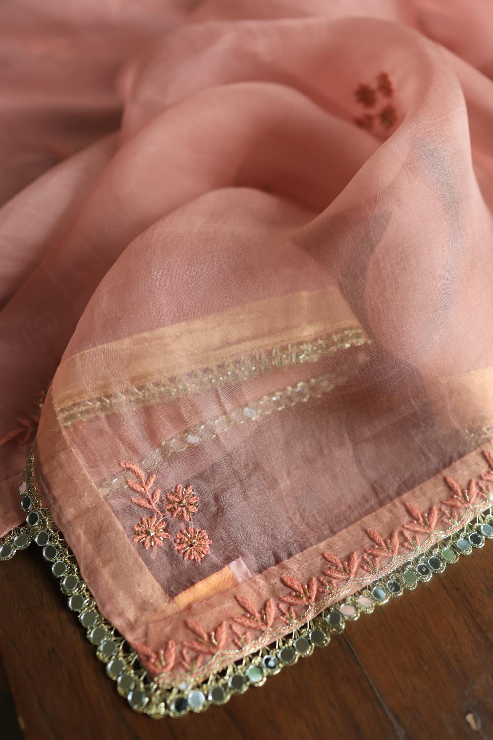 Pastel Peach Noor Organza Silk Chikankari Unstitched Kurta Dupatta Set