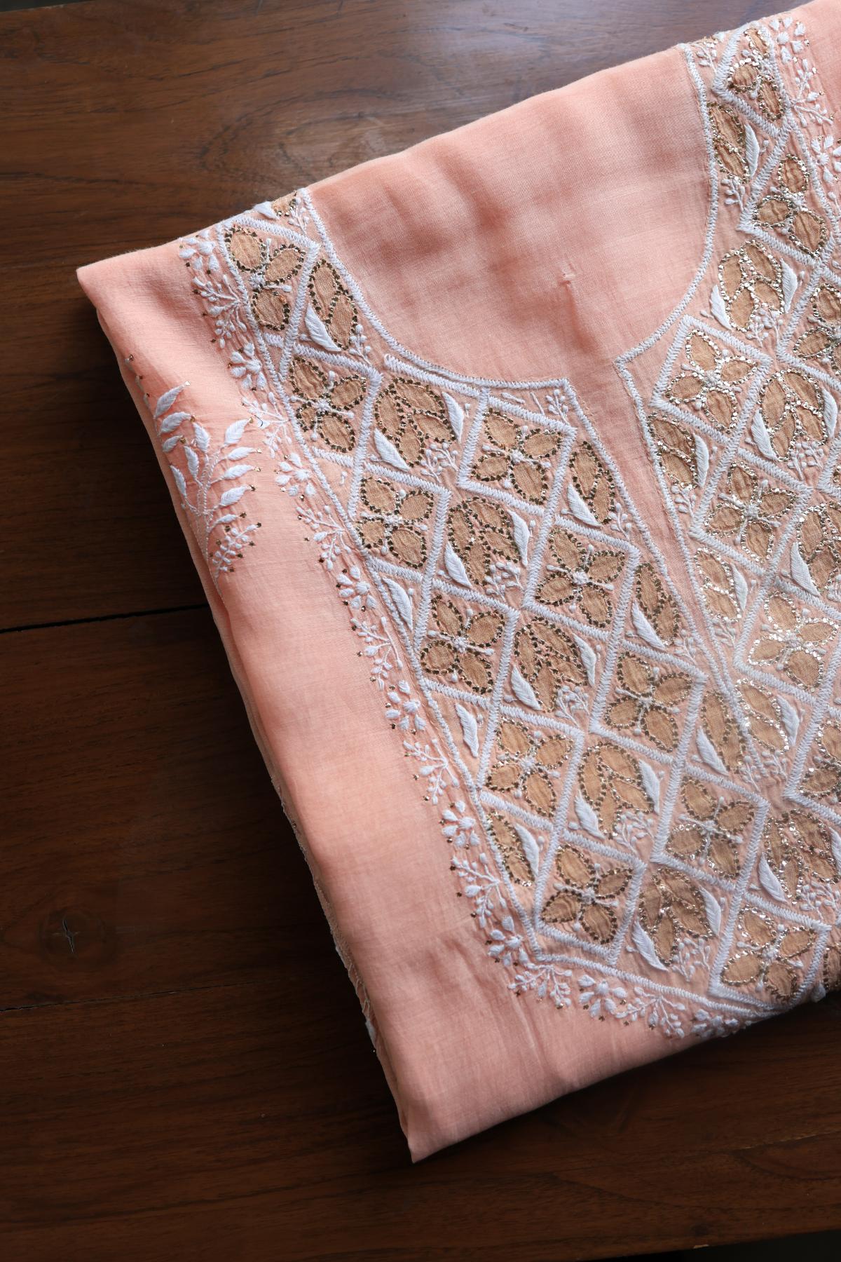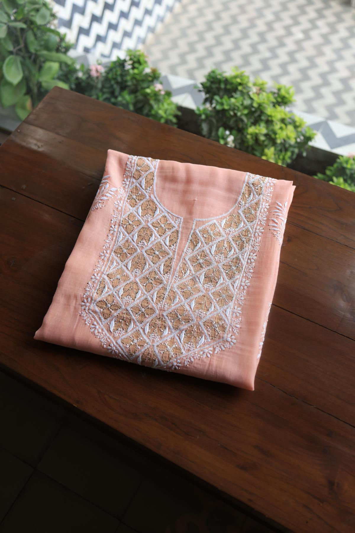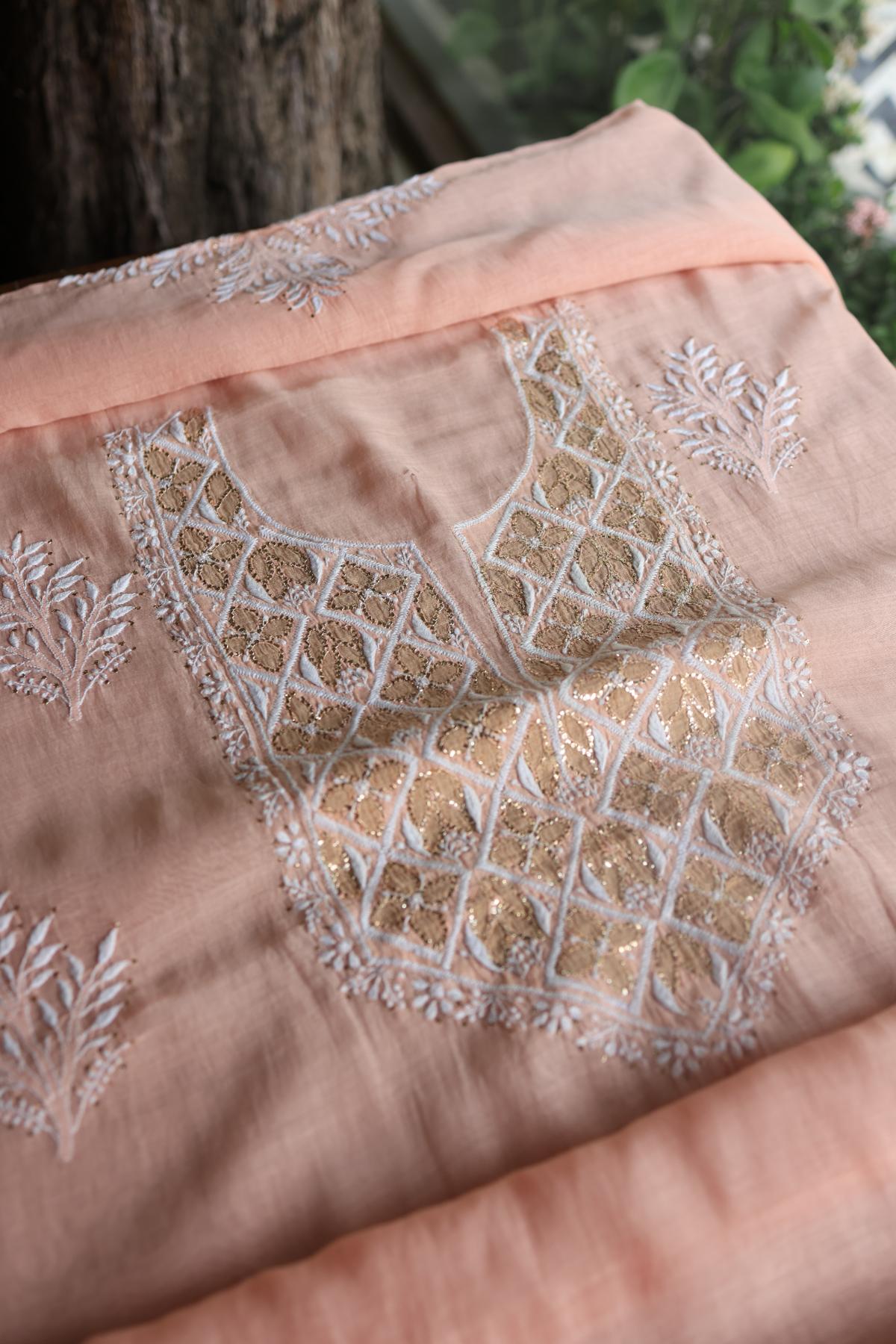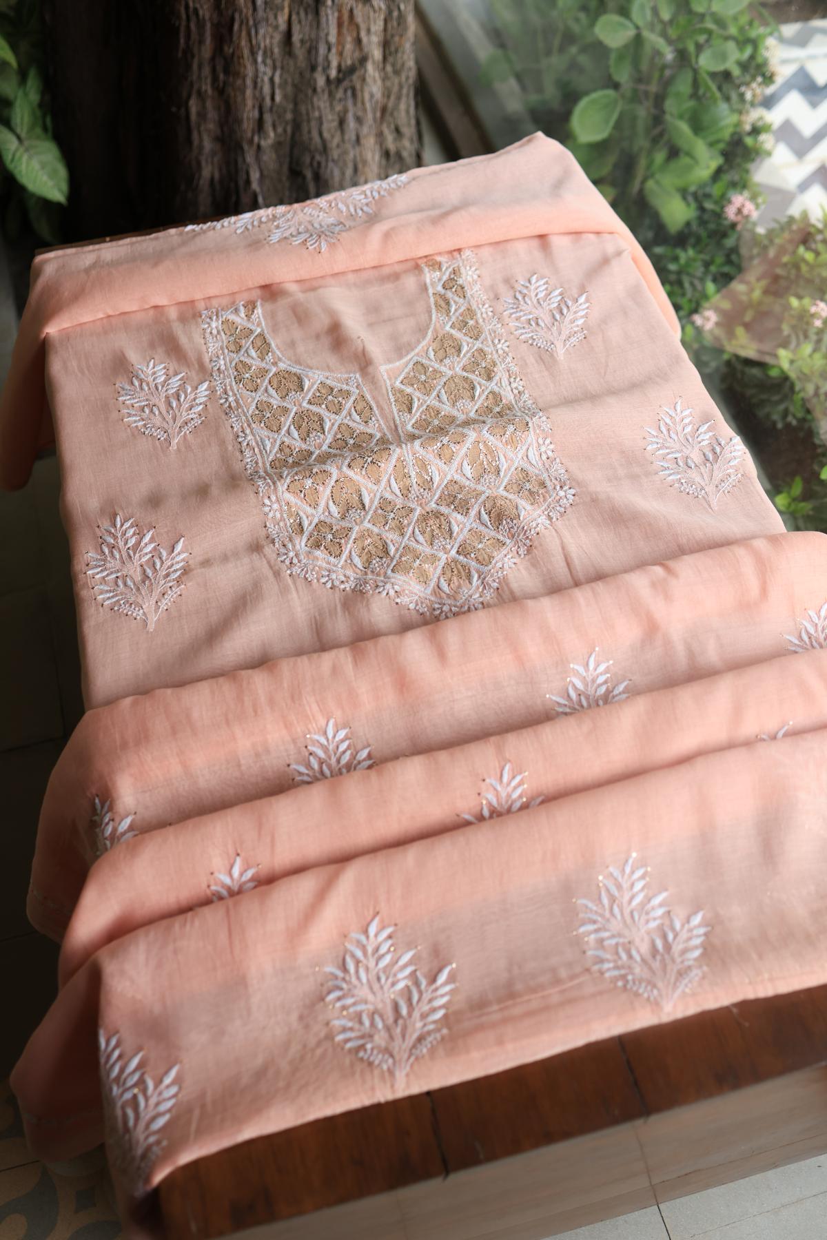 Each piece is crafted with intricate hand-embroidered Chikankari, featuring different traditional embellishments: