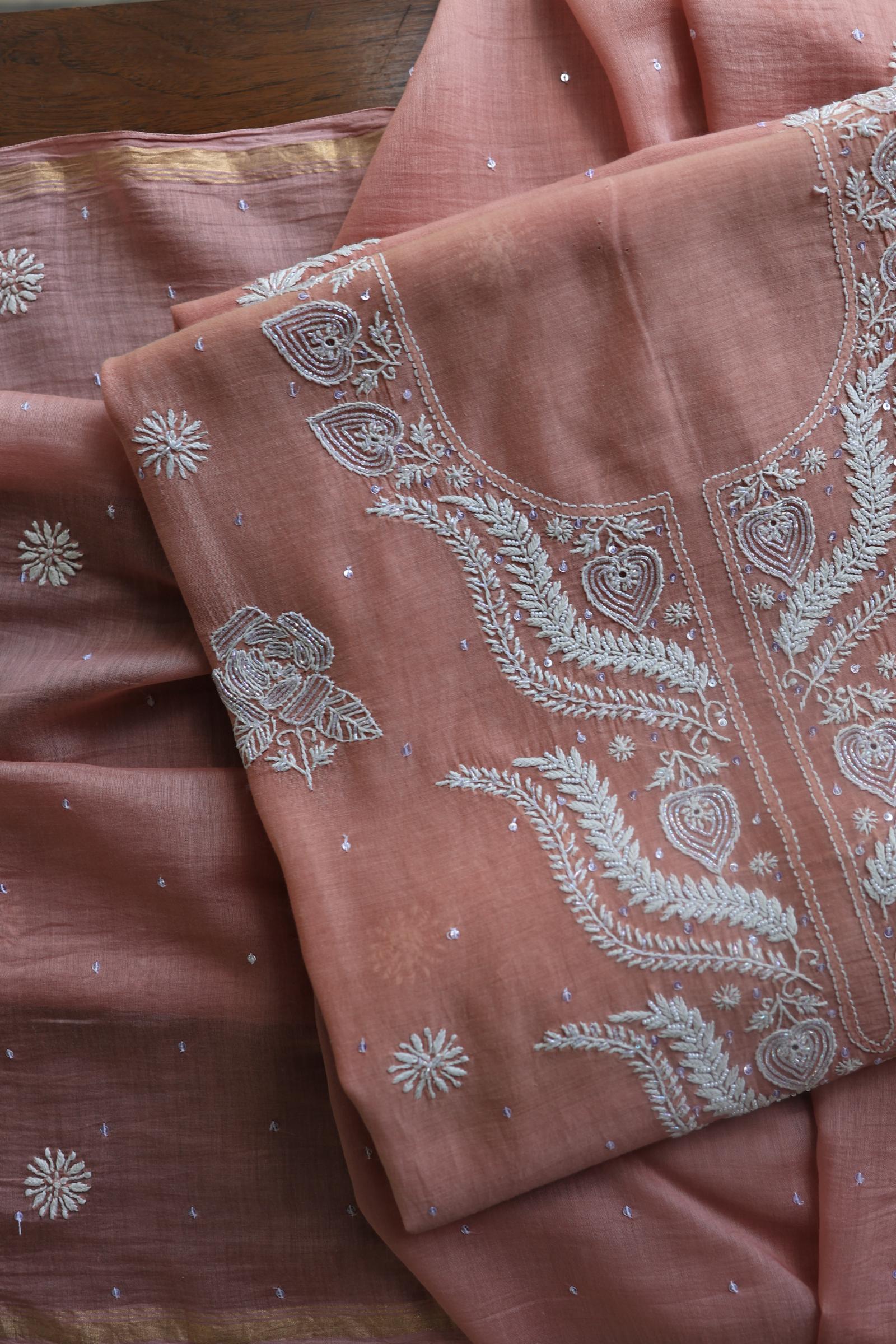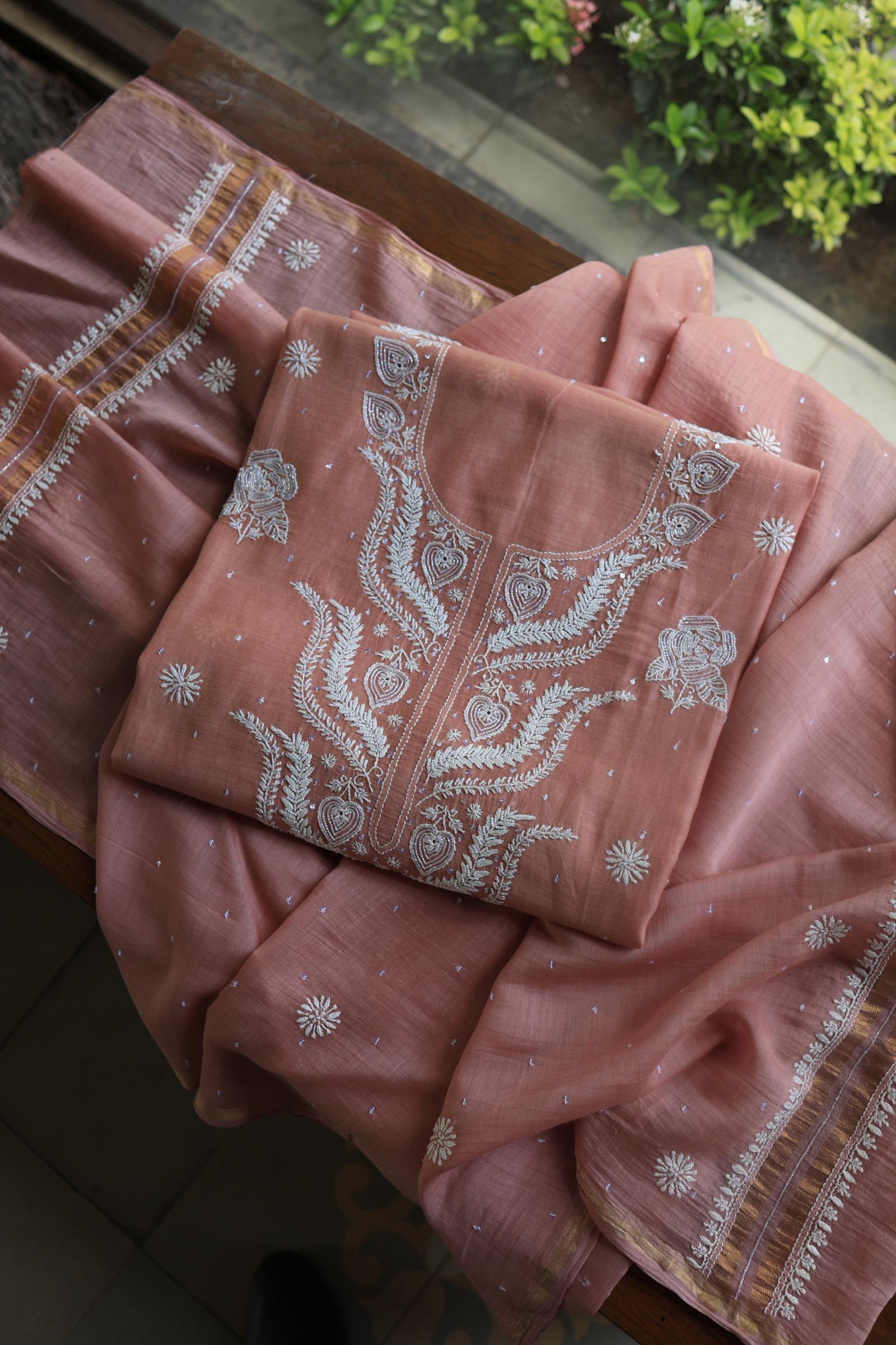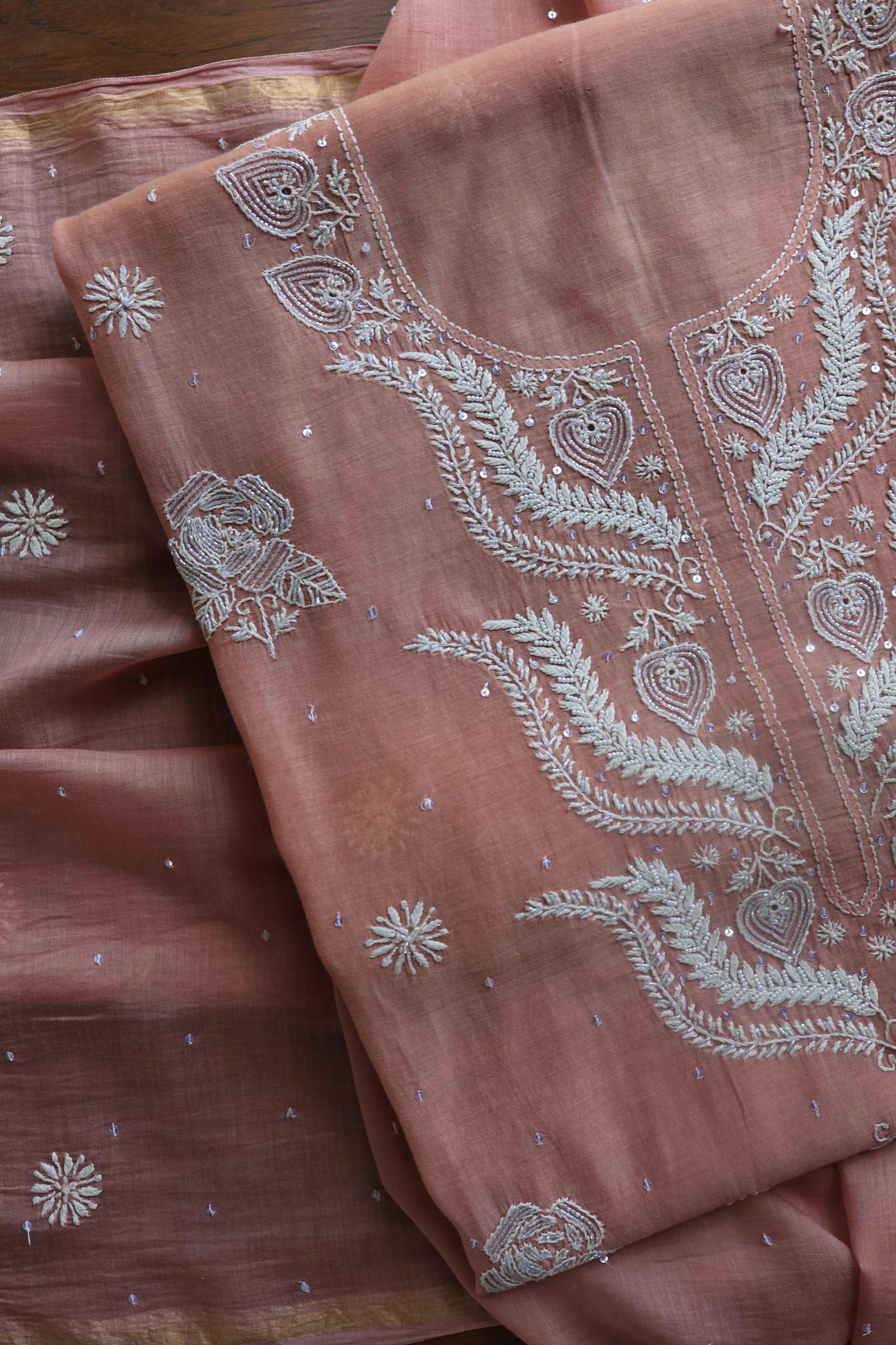 Each piece is crafted with intricate hand-embroidered Chikankari, featuring different traditional embellishments: