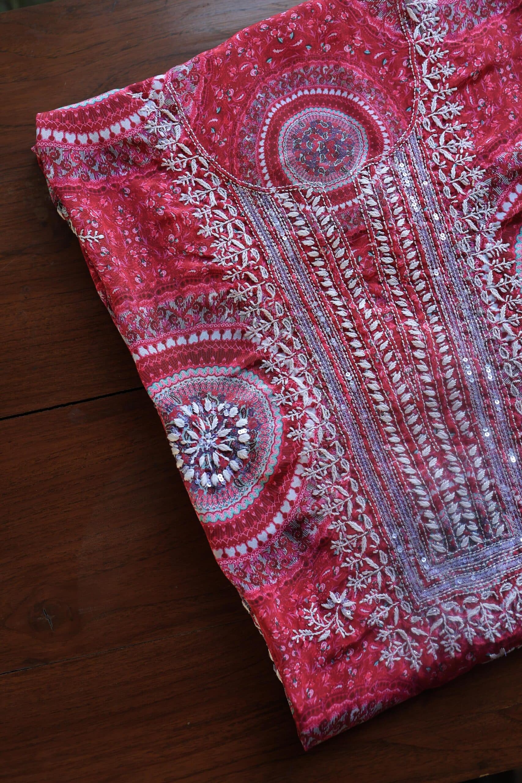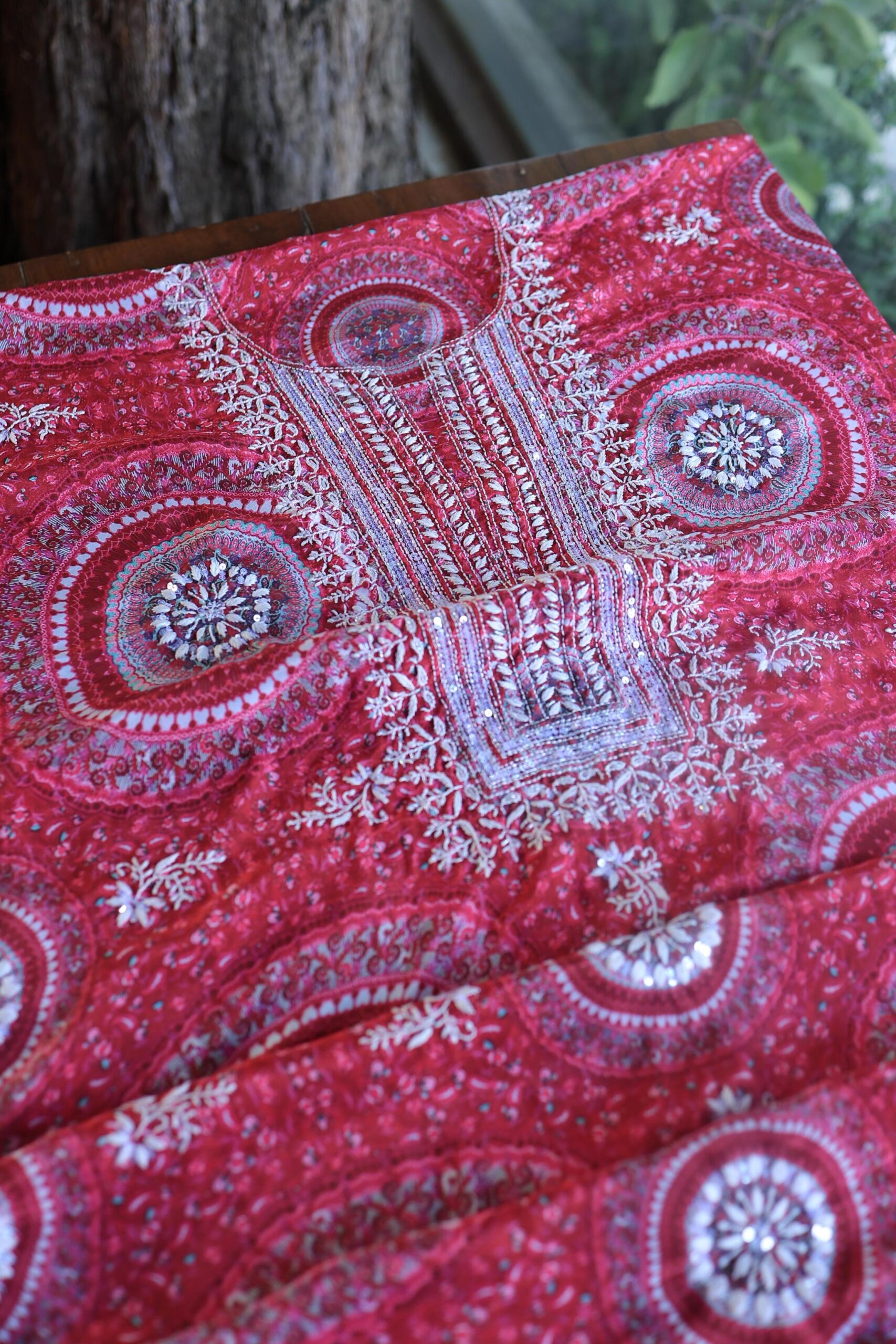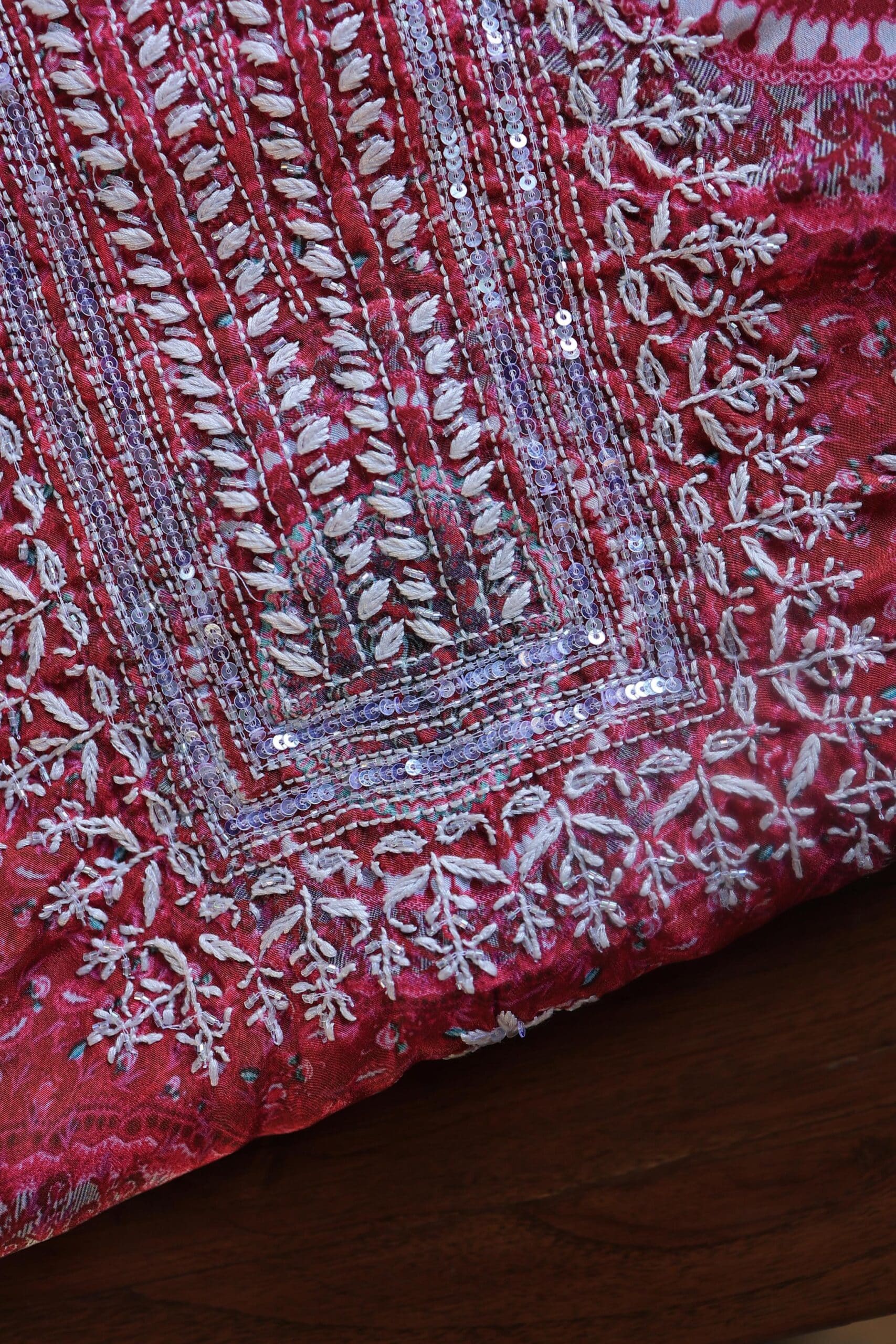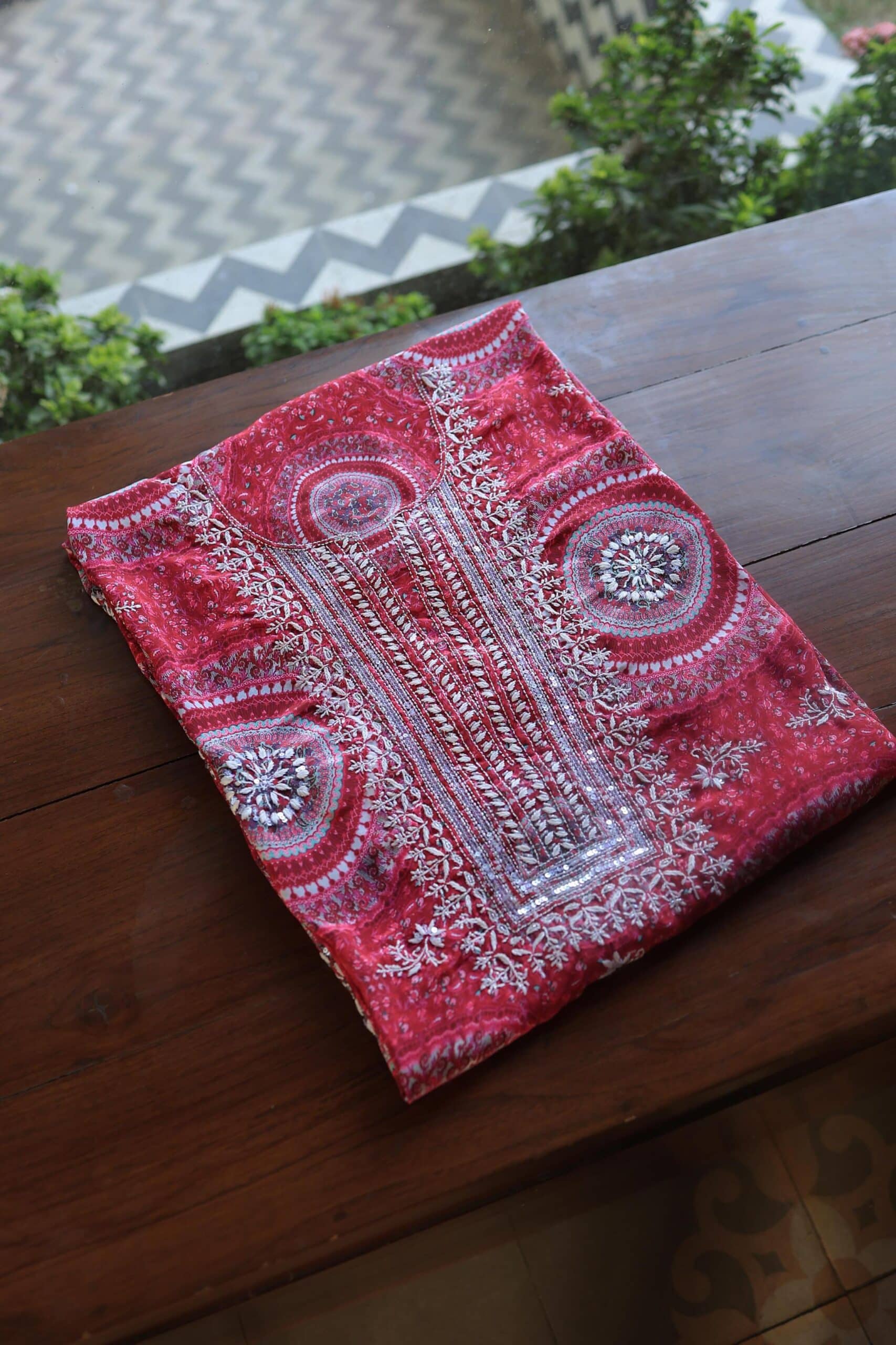 Pink Muslin Chikankari Unstitched Kurta Fabric