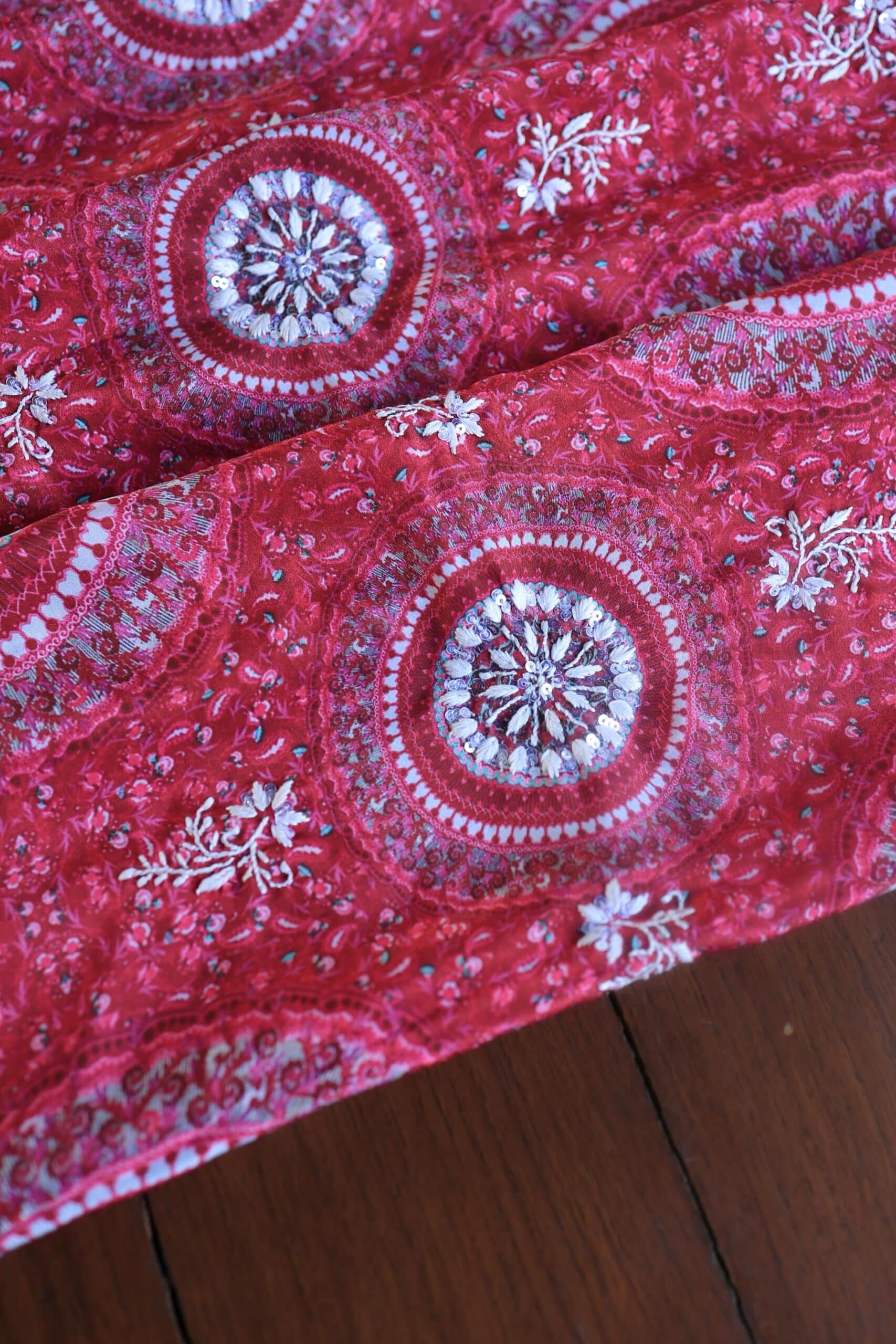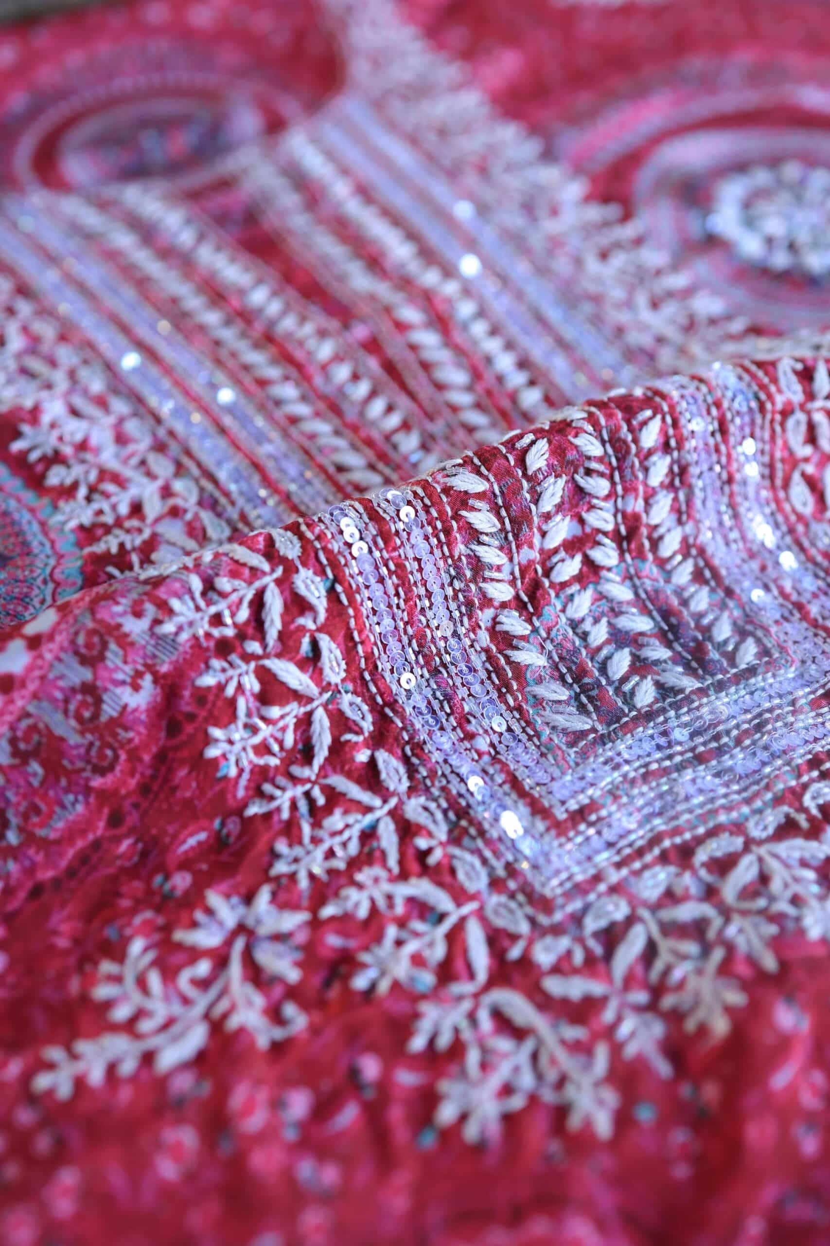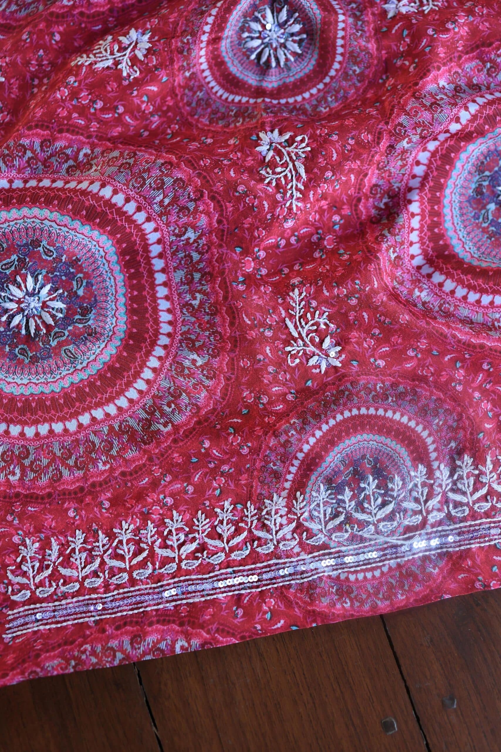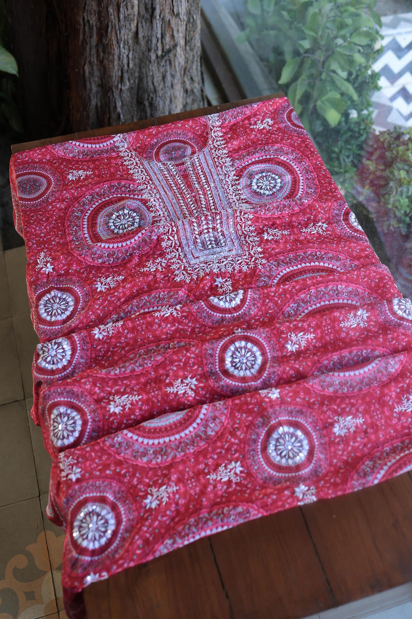 Pink Muslin Chikankari Unstitched Kurta Fabric