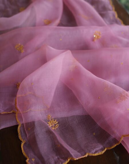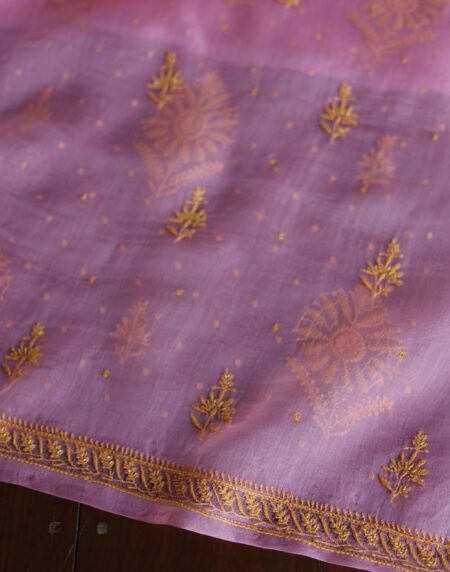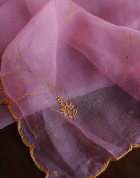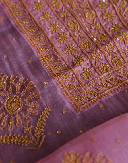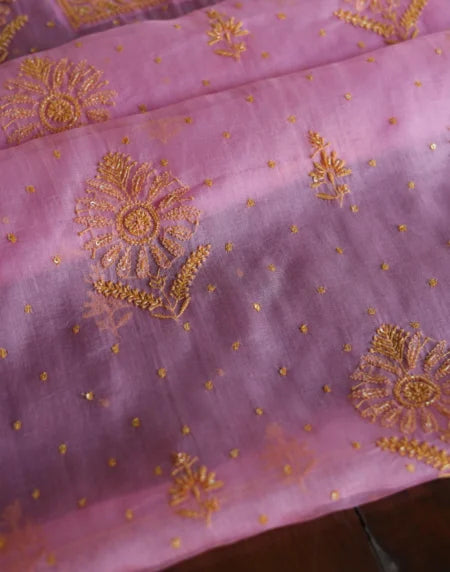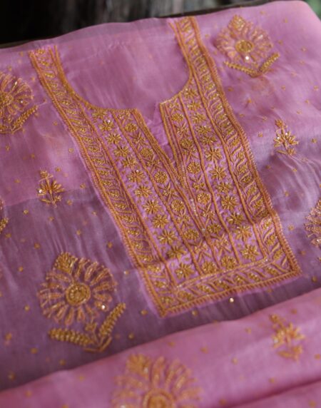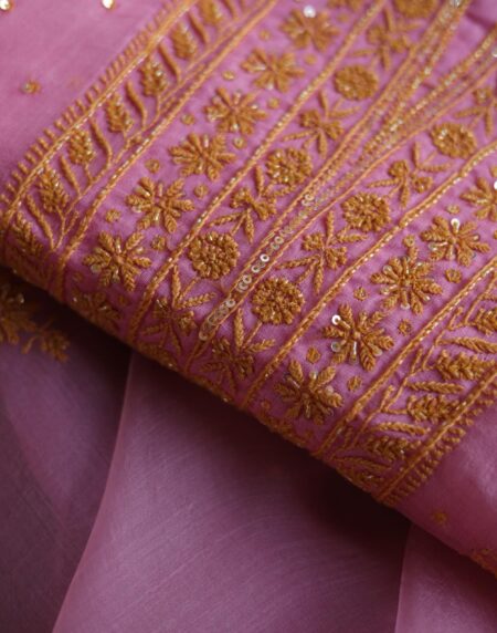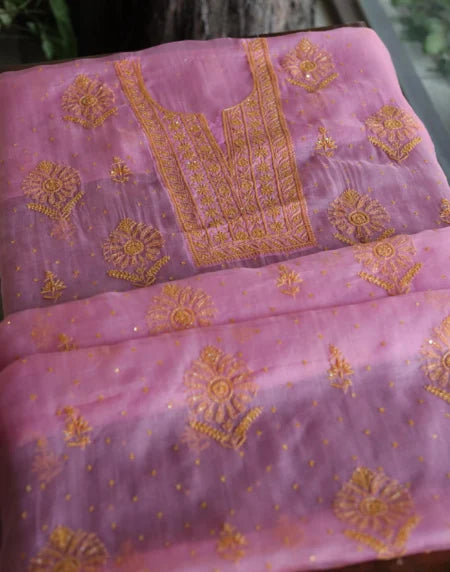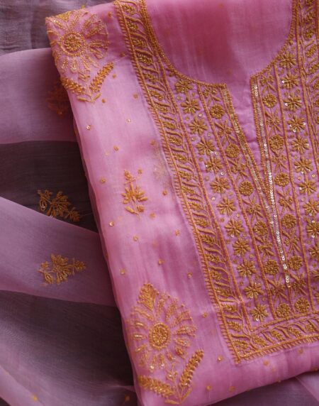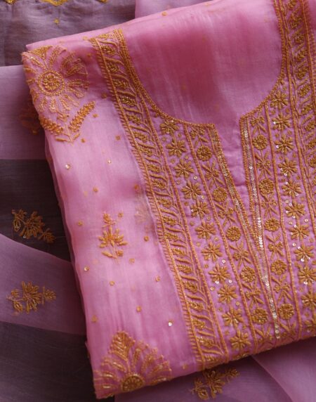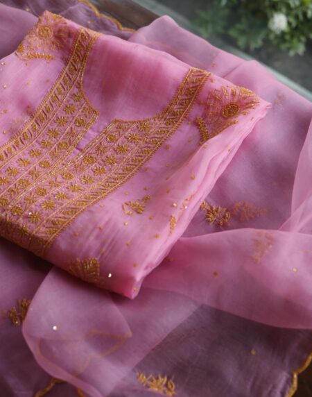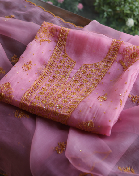 Pink Noor Organza Silk Chikankari Unstitched Kurta Dupatta Set