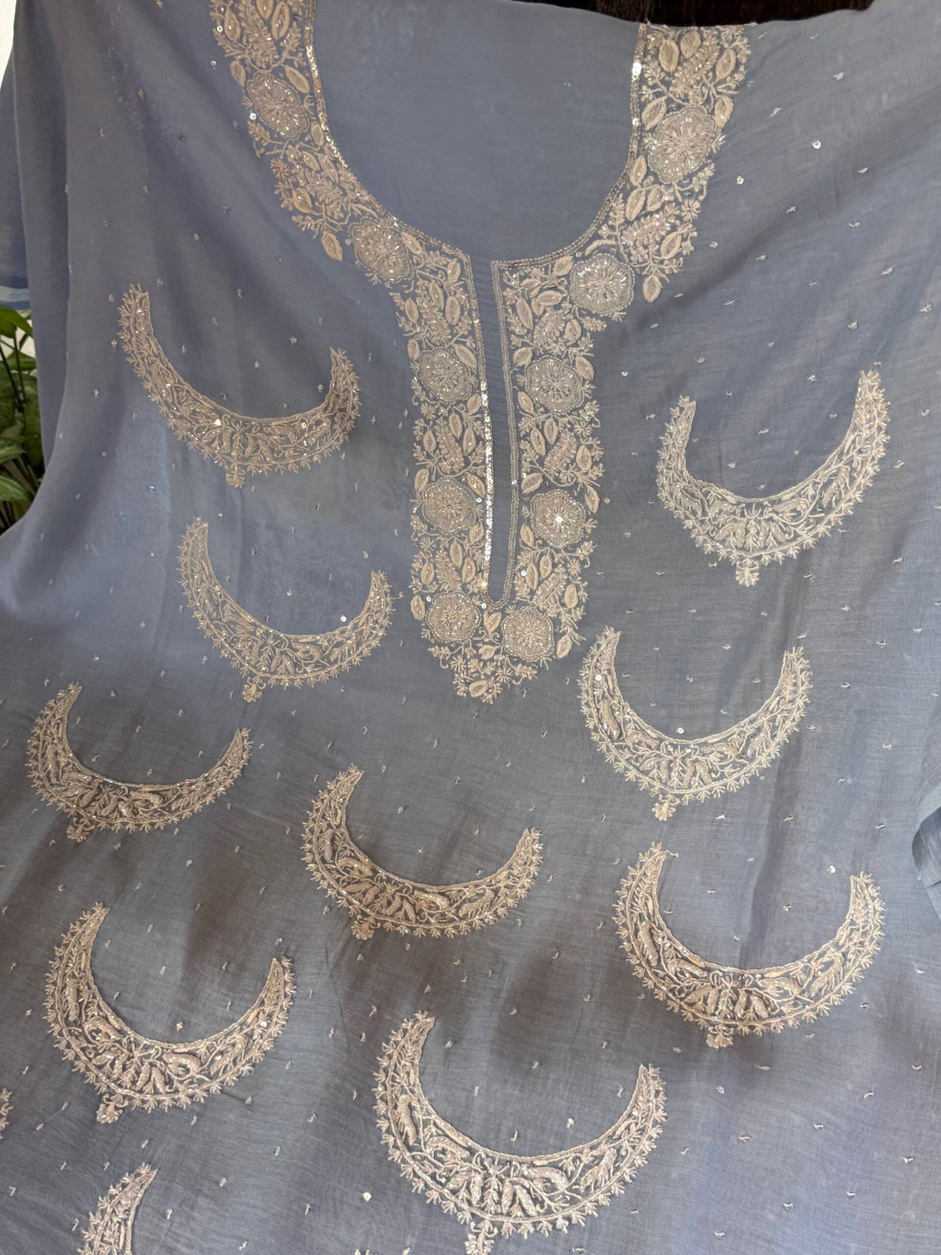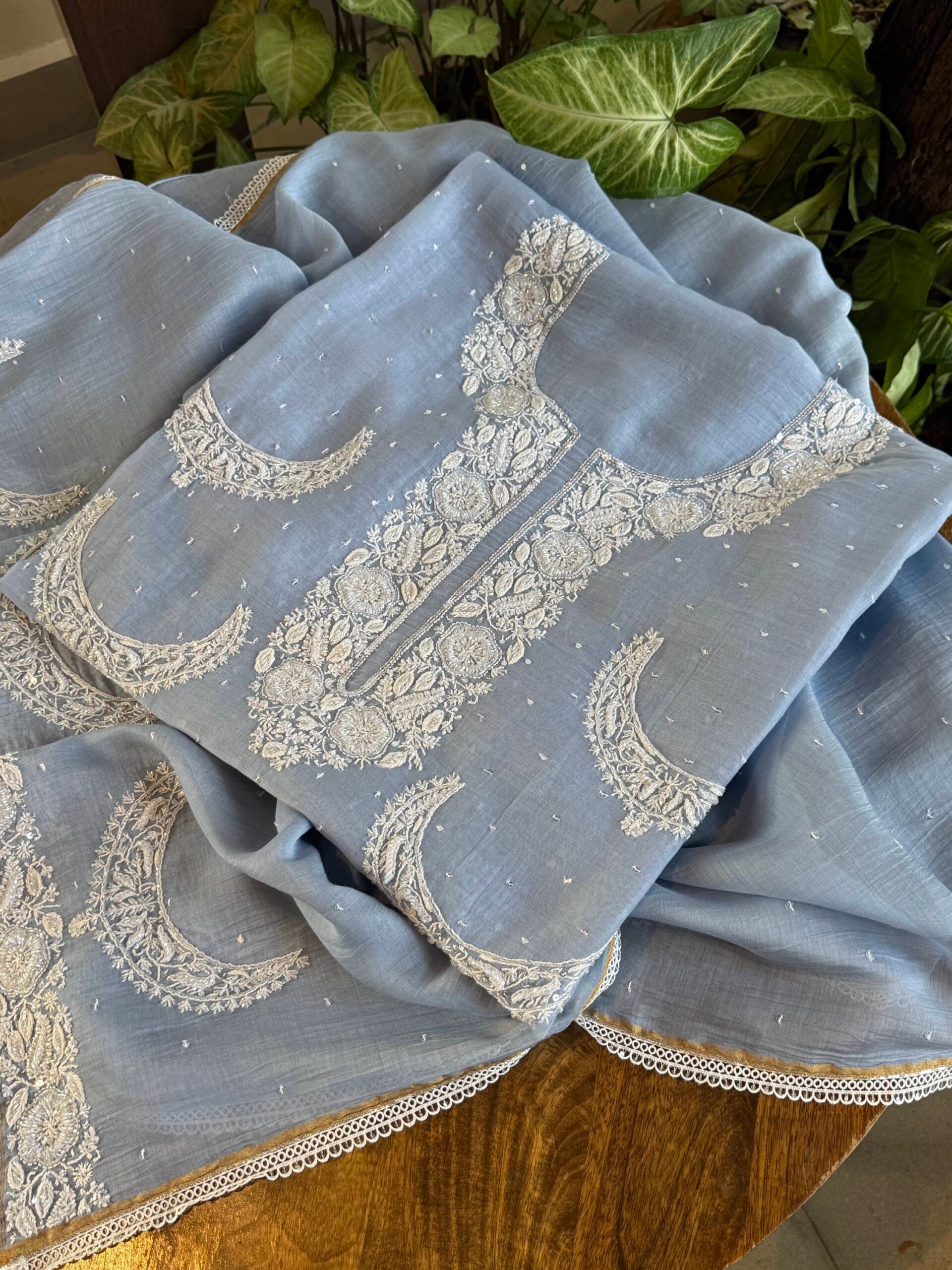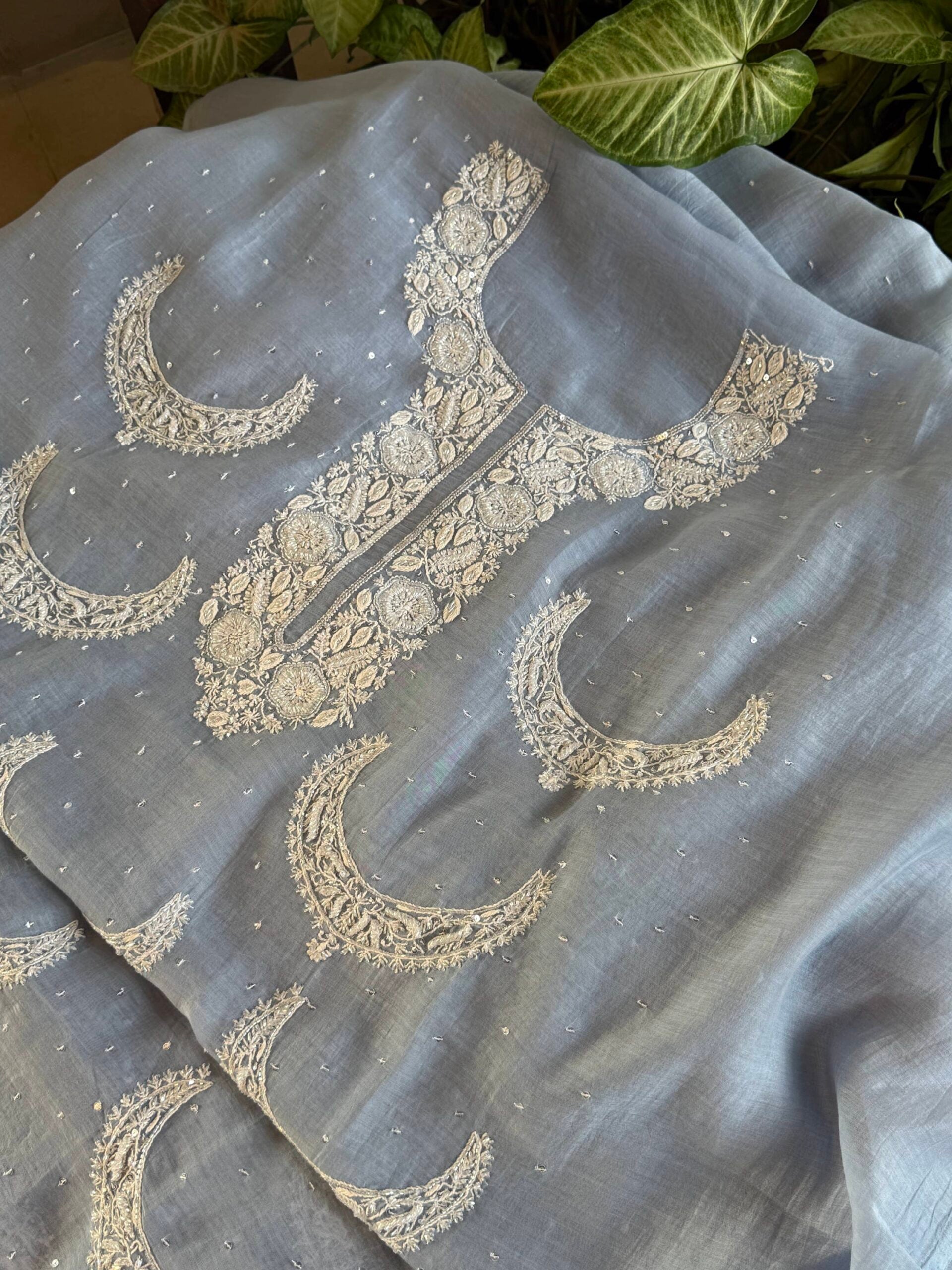 Powder Blue Crescent Chandbala Chikankari Unstitched Fabric