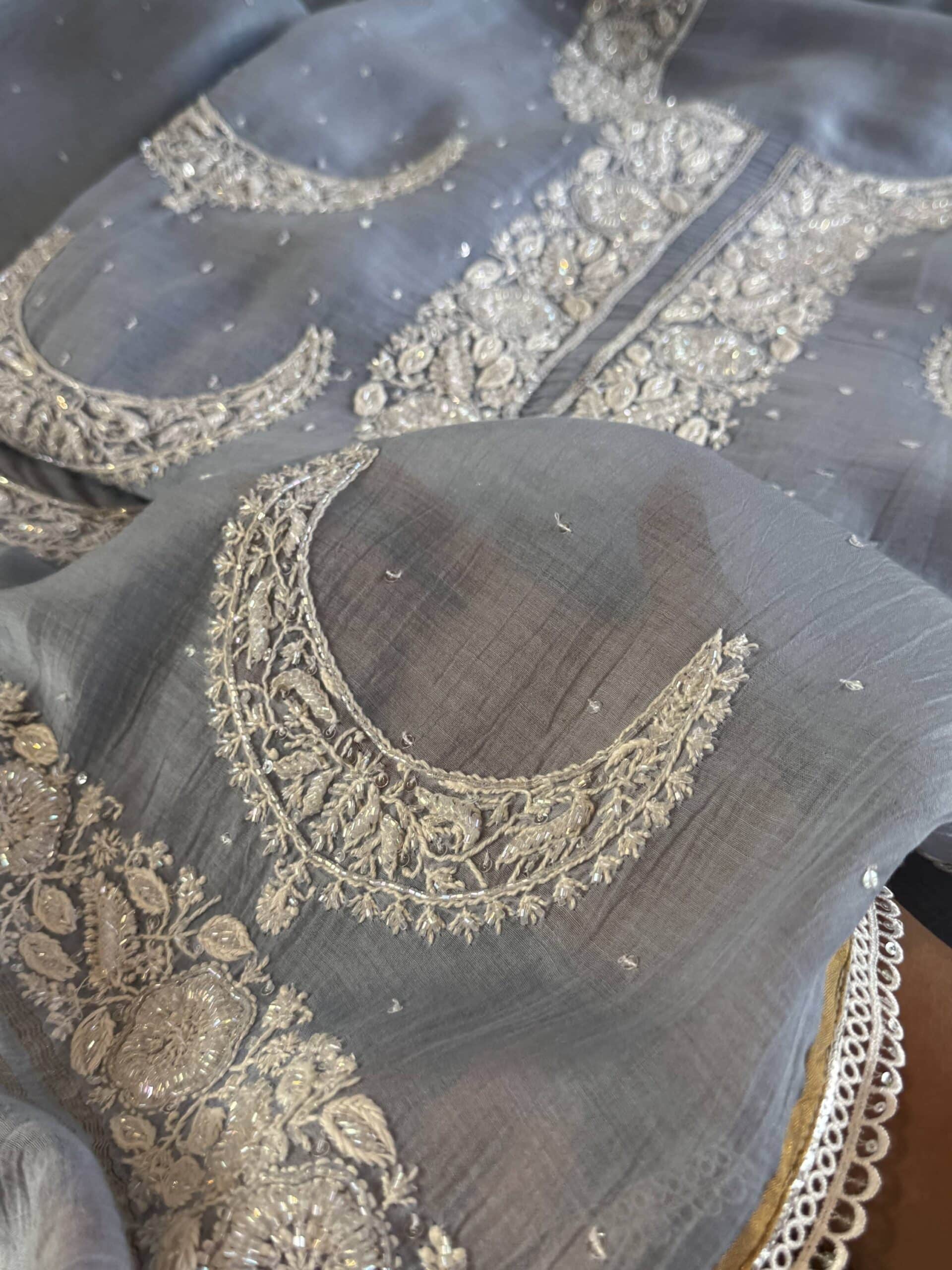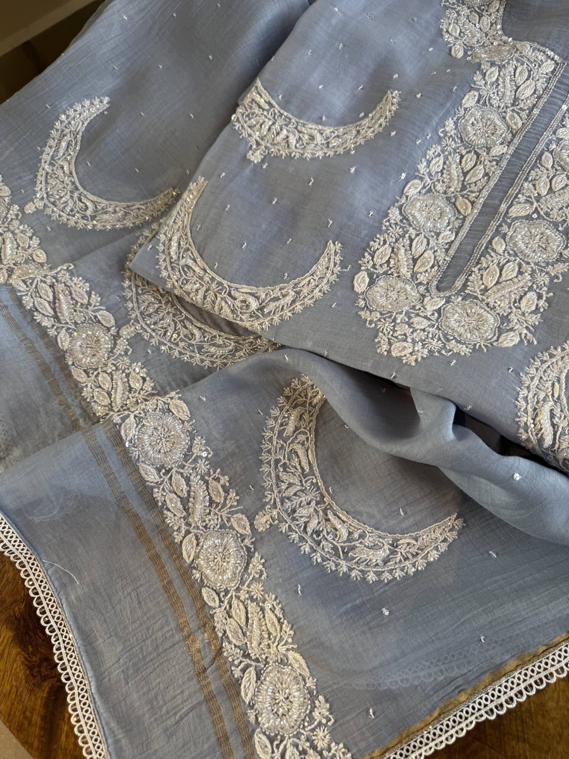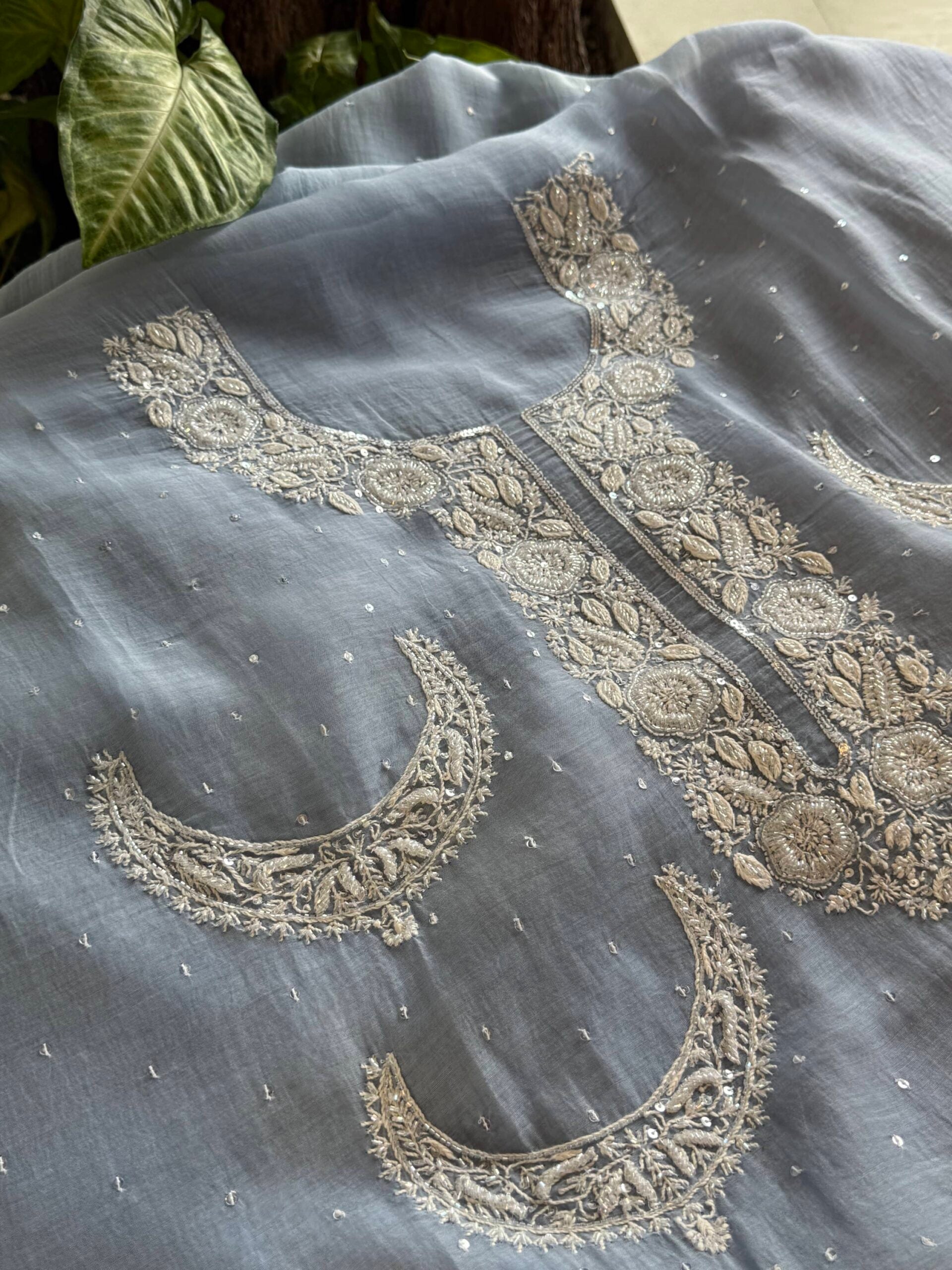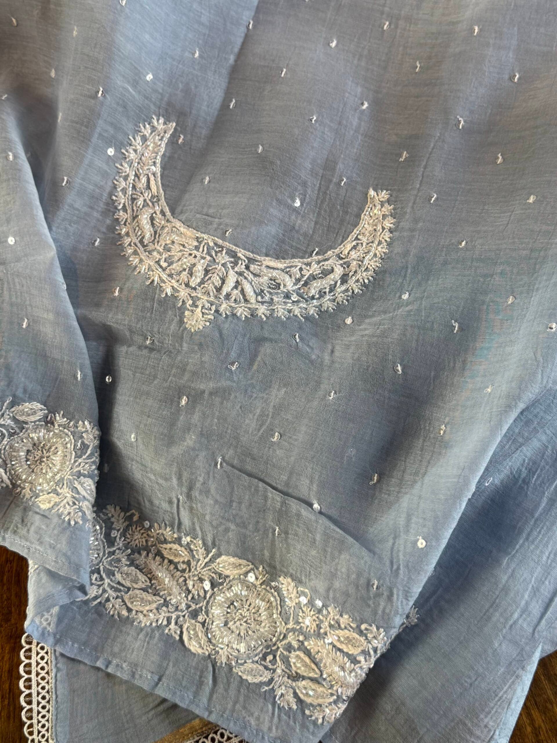 Powder Blue Crescent Chandbala Chikankari Unstitched Fabric