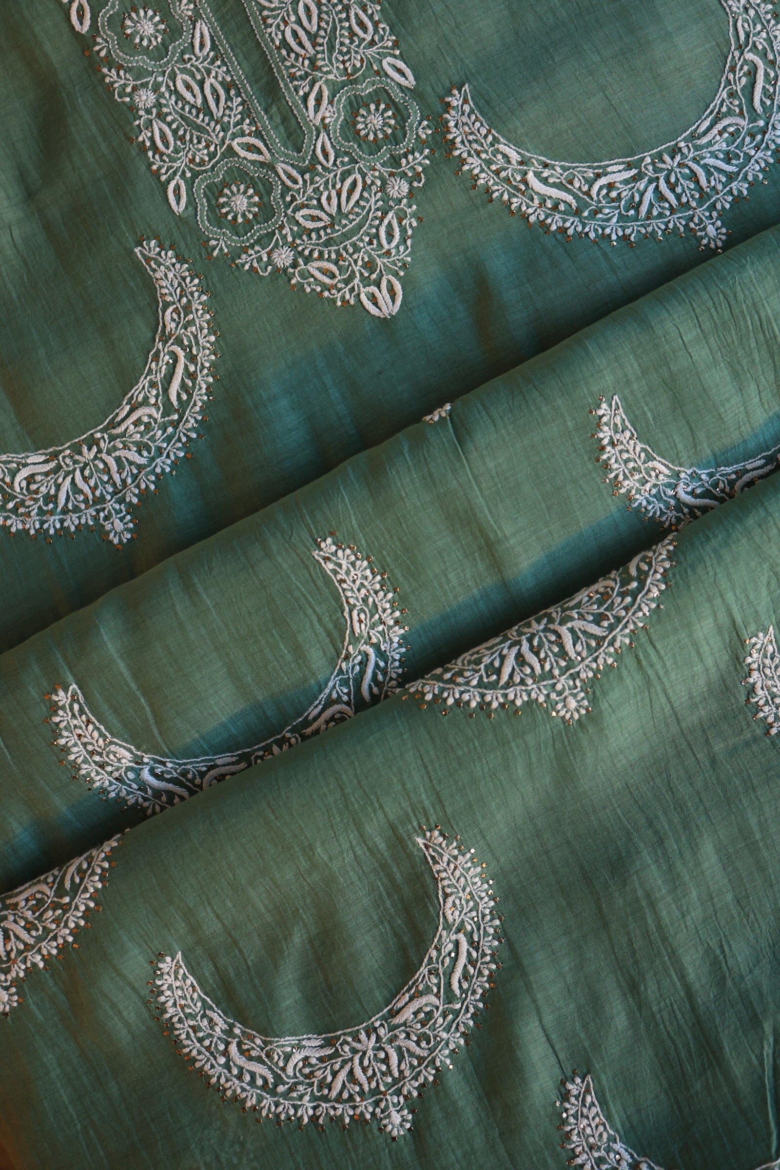 Cactus Green Crescent Chandbala Kamdani Chikankari Unstitched Fabric
