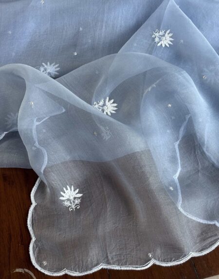 Organza on beautiful shade done with contrasting white Chikankari embroidery and our signature ari & beads work