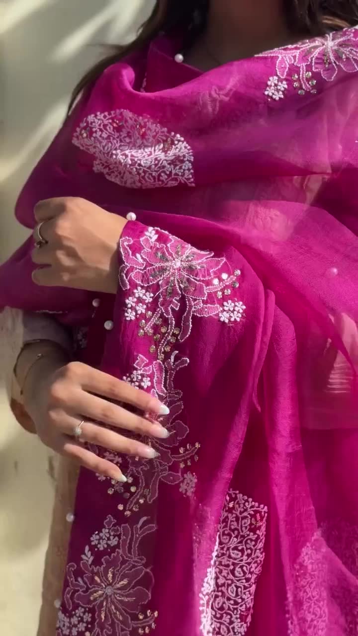 Red Violet Shade Fine Chikankari Organza Mukaish Dupatta