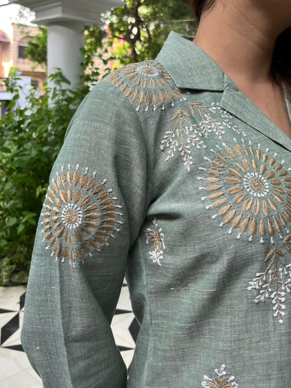 Sage Green Malkha Cotton Chikankari Co-ord Set
