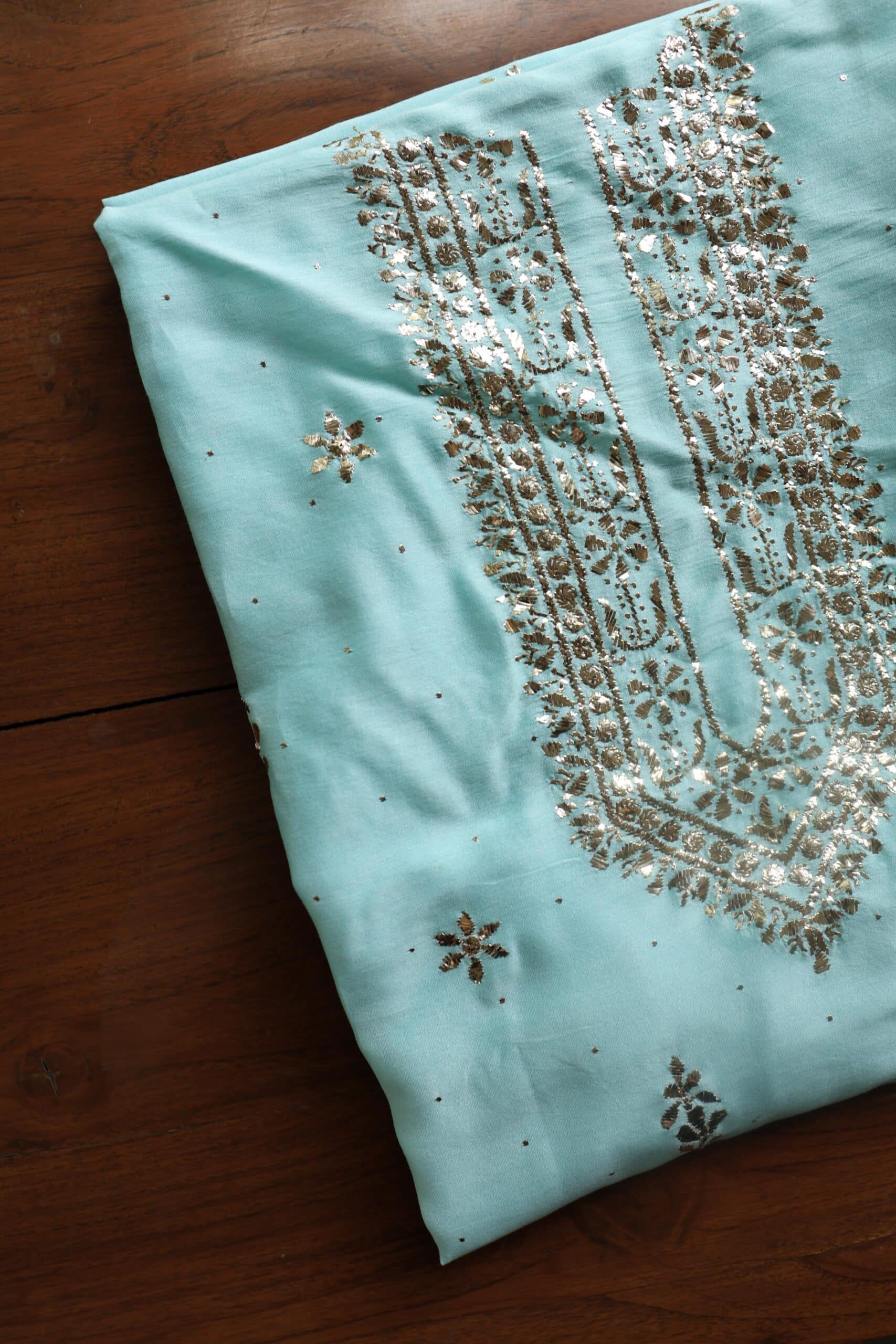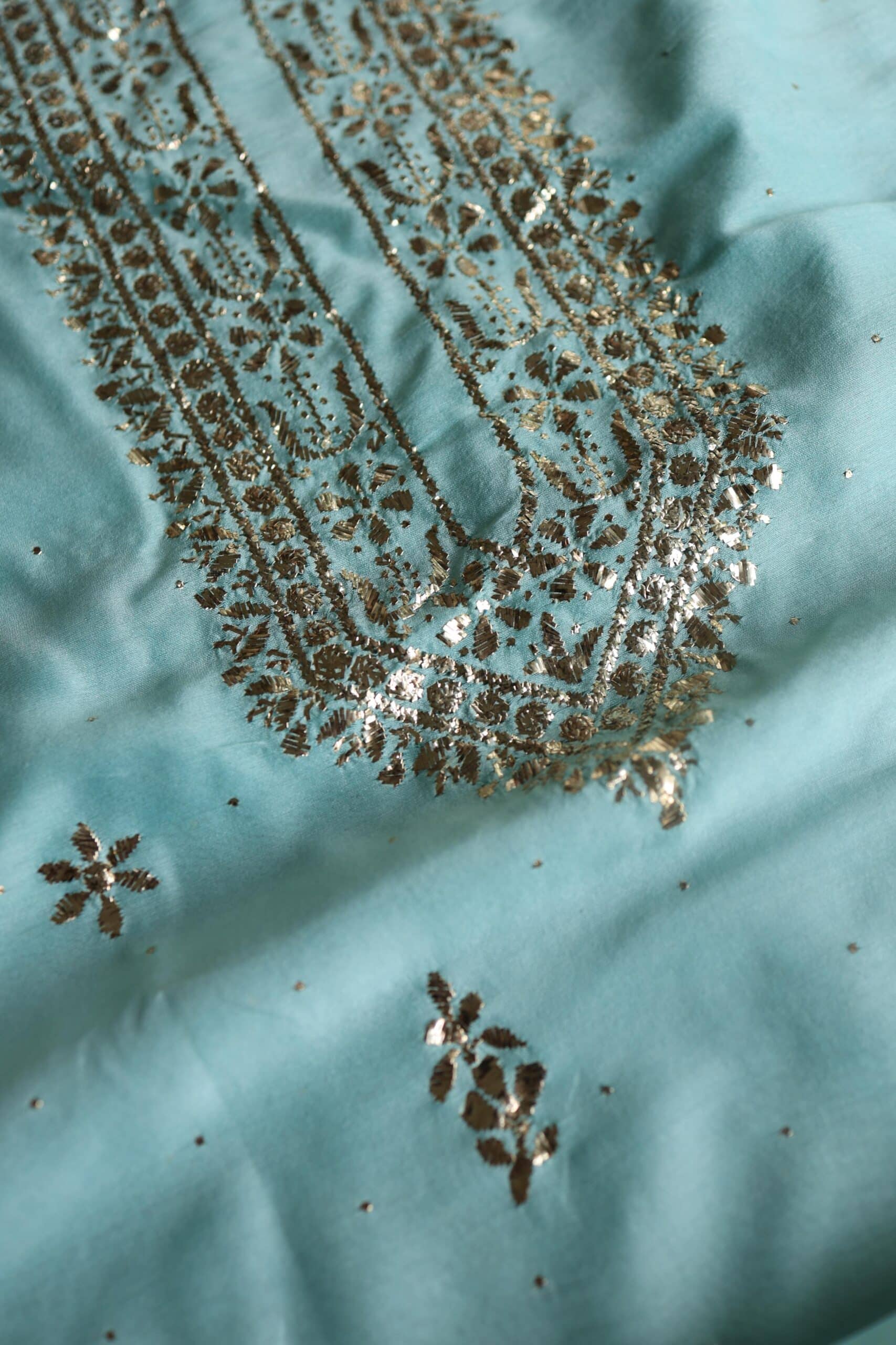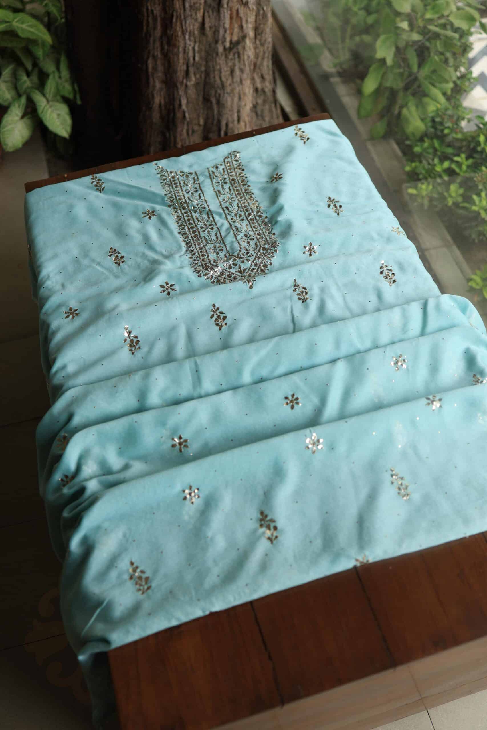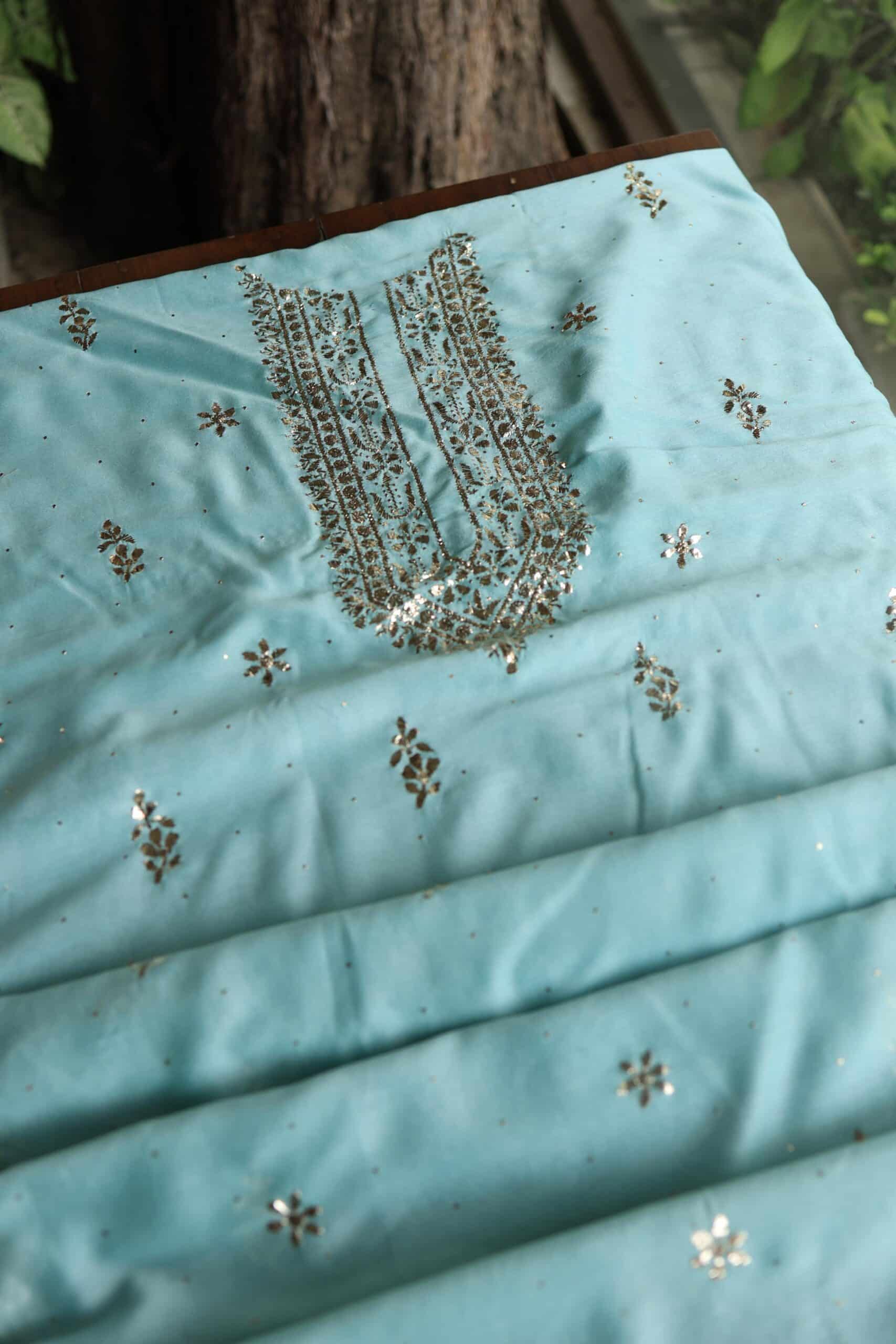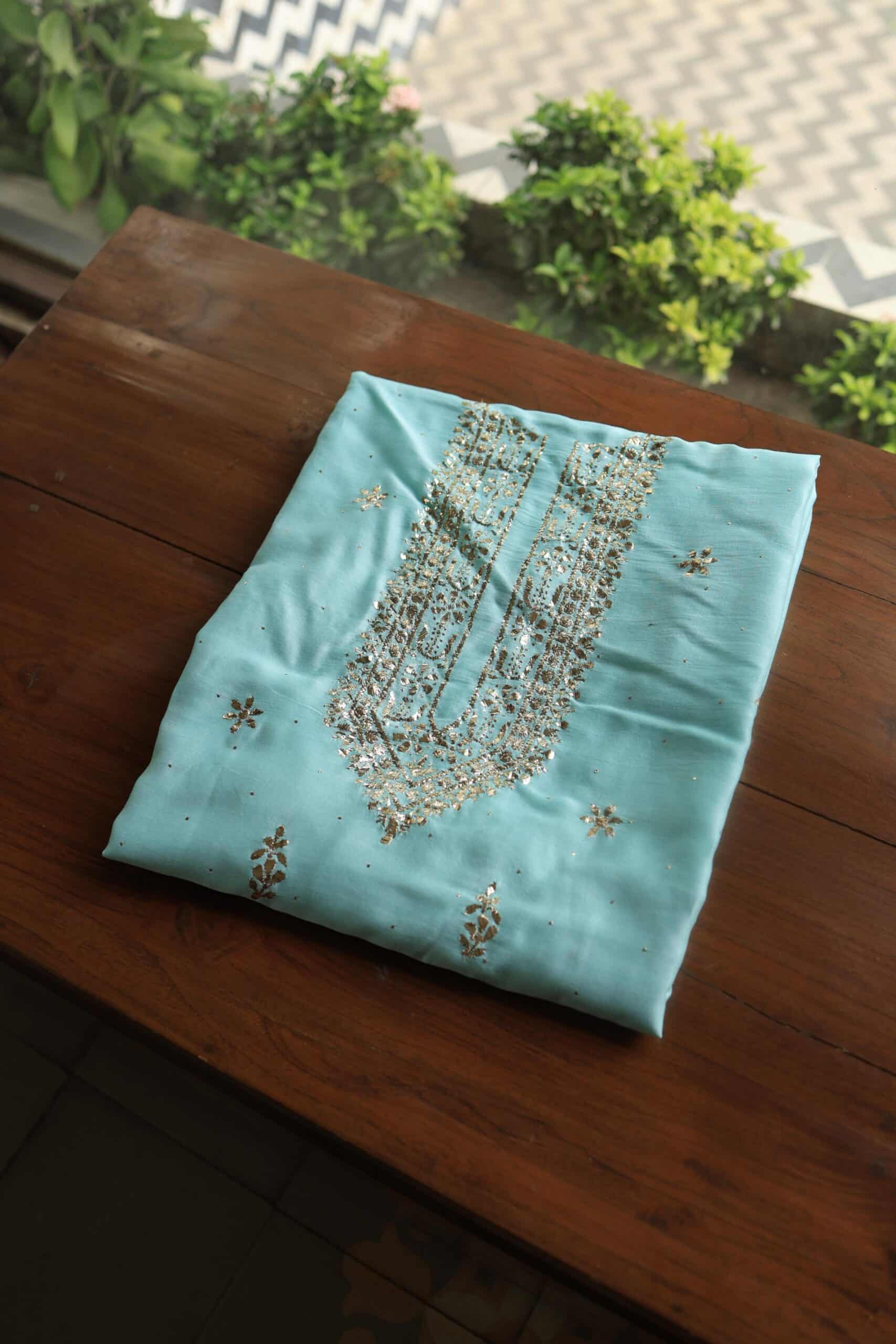 Sea Green Chanderi Mukaish Badla Unstitched Chikankari Unisex Kurtas