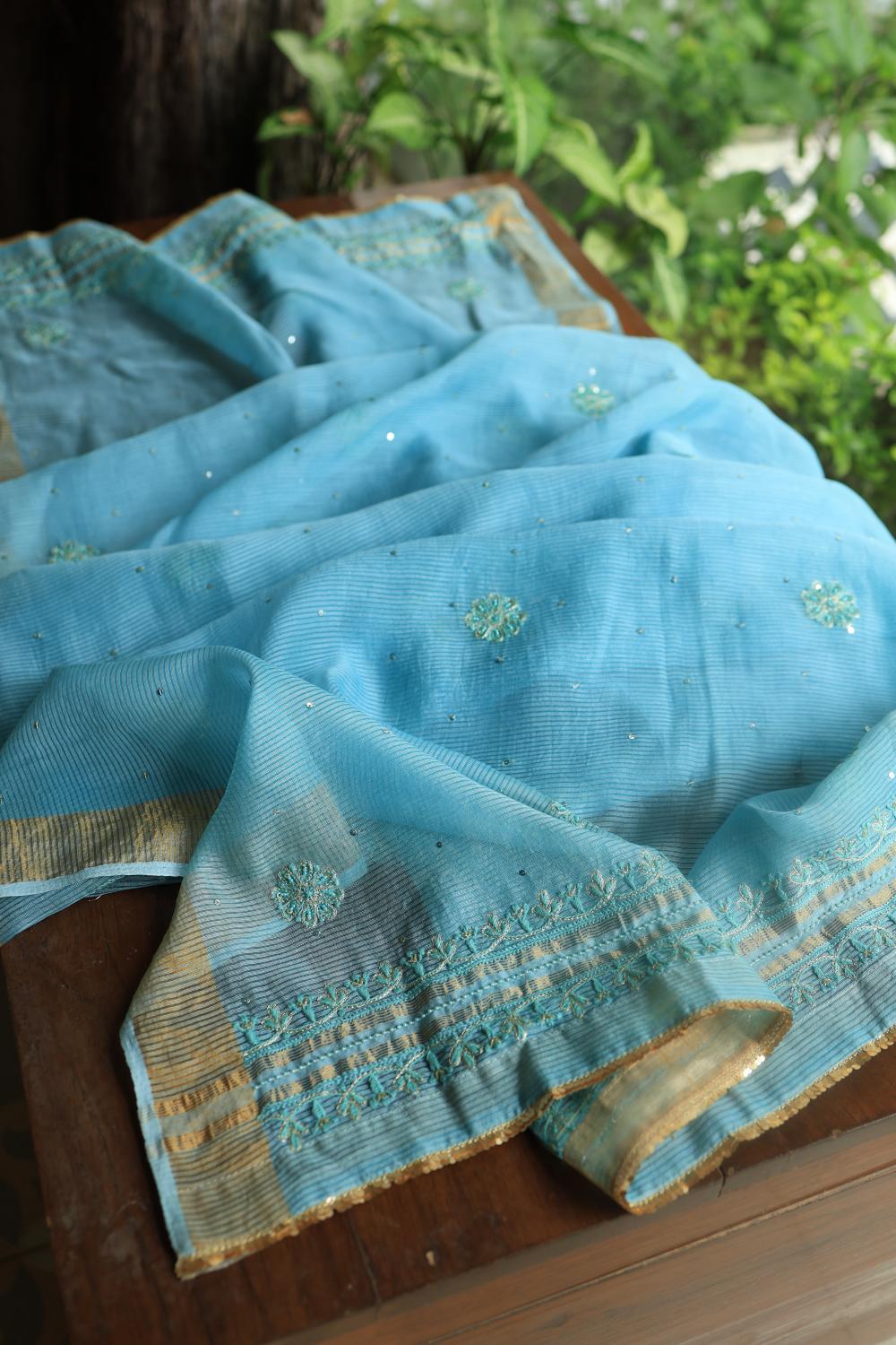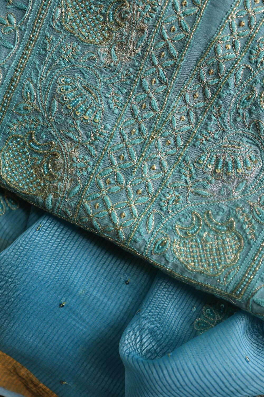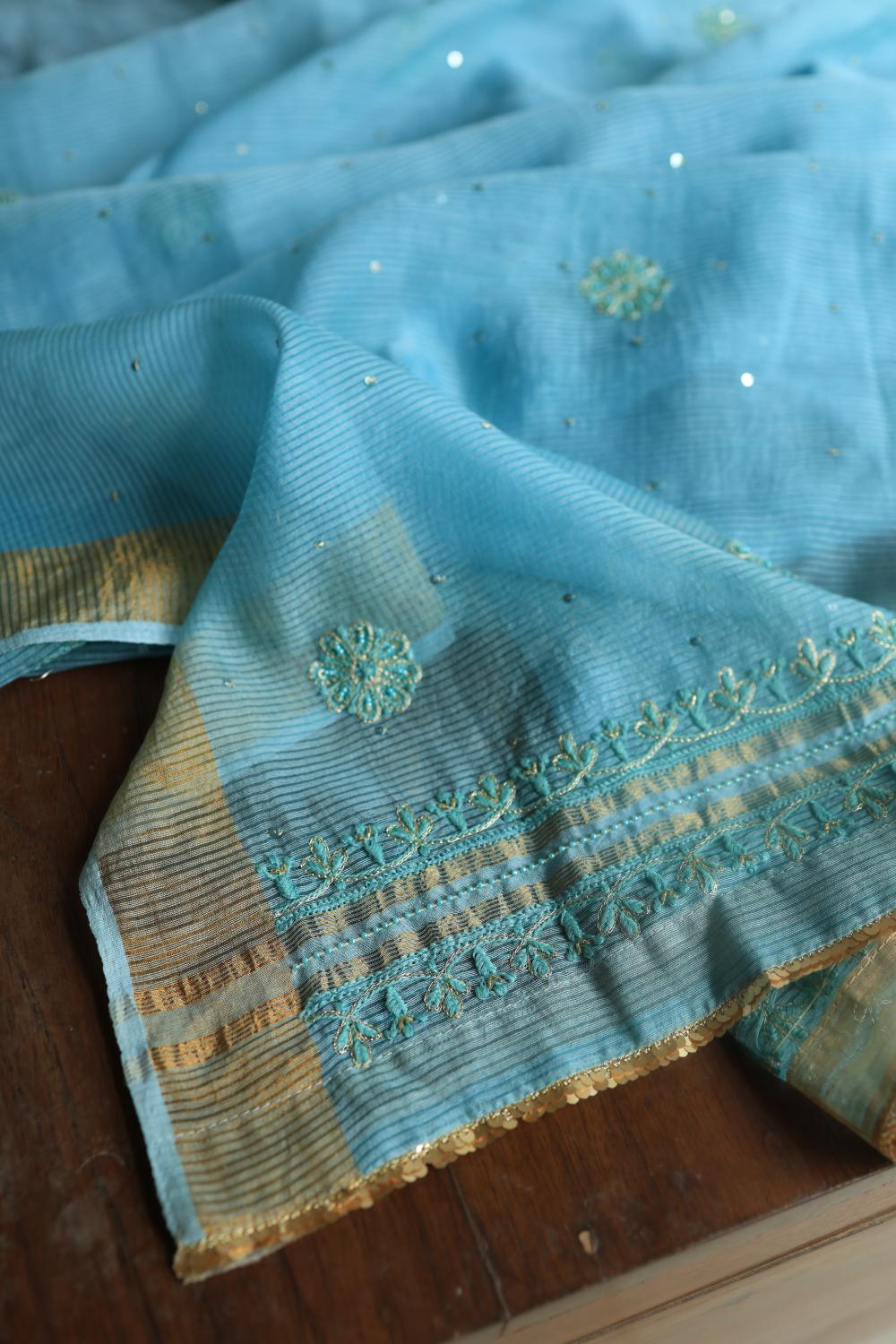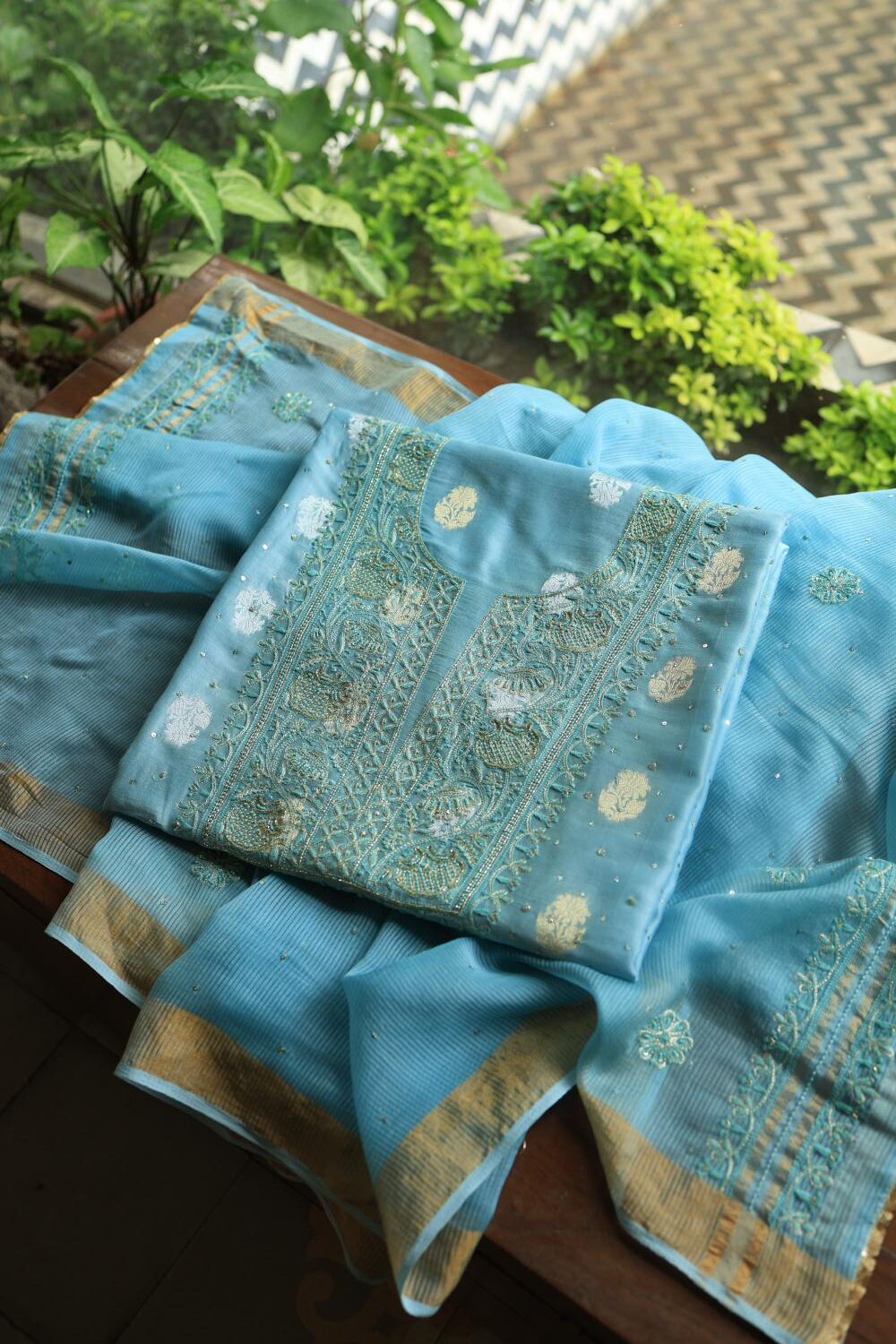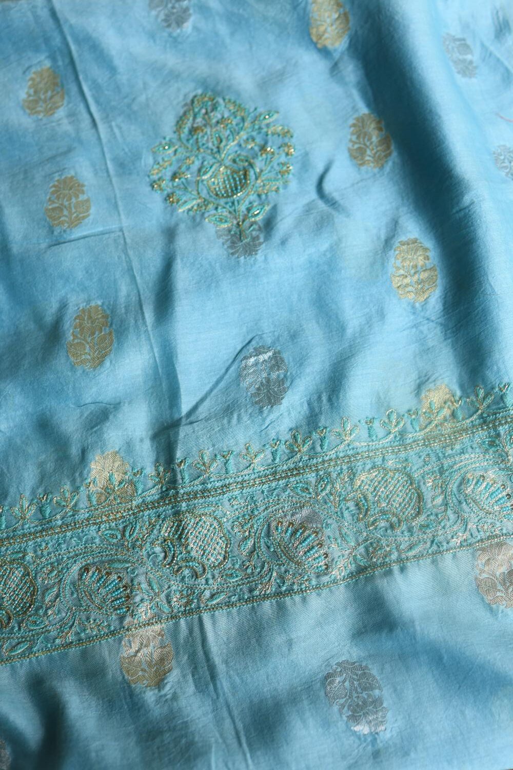 Sky Blue Banarasi Zari Chanderi Unstitched Chikankari Fabrics