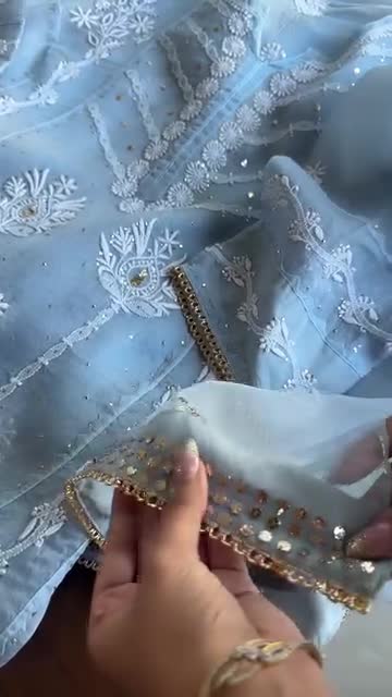 Sky Blue Noor Organza Applique Chikankari Mukaish Kurta Dupatta Set