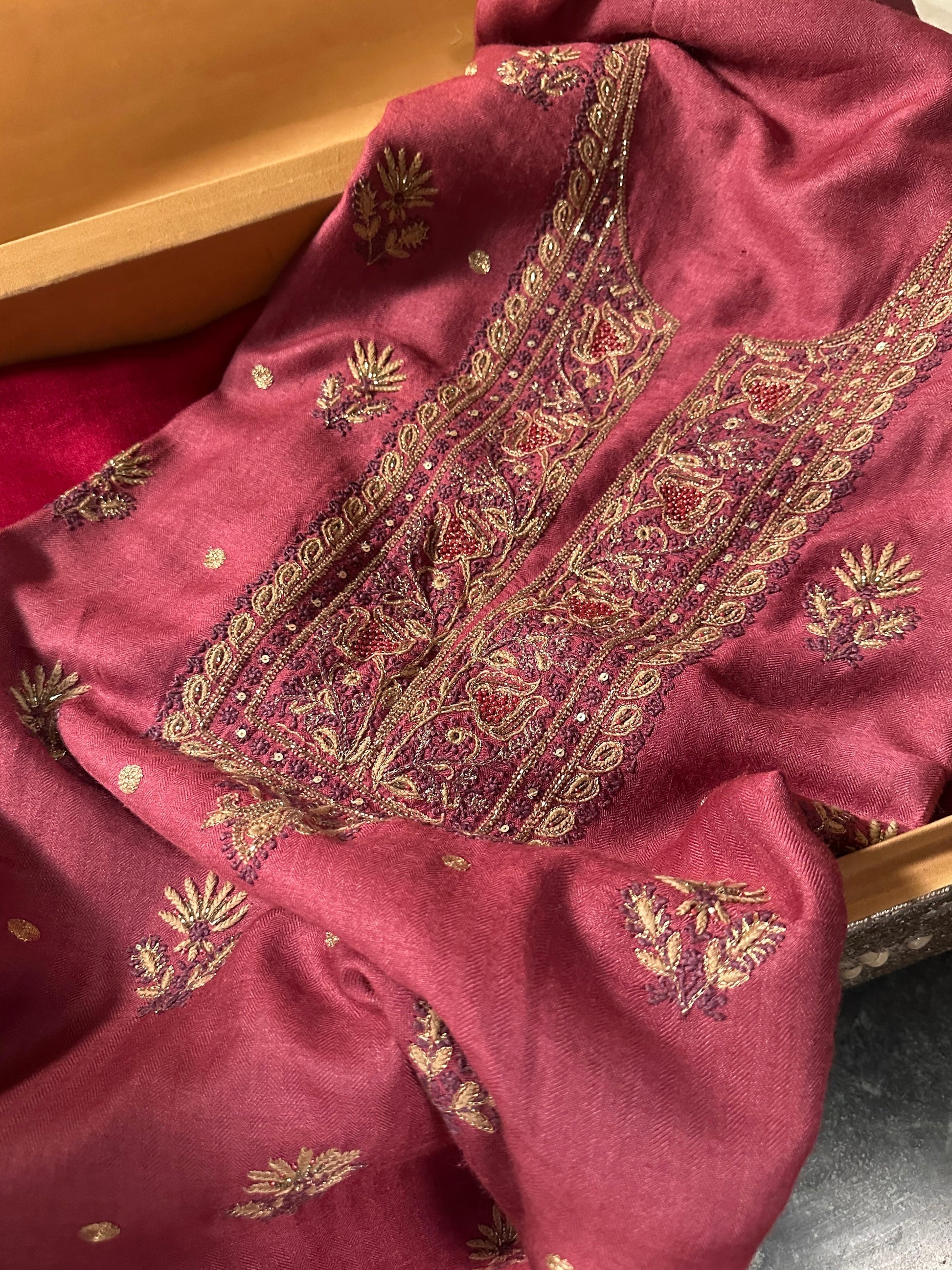 Solid Dusty Pink Pashmina x Chikankari Fabrics