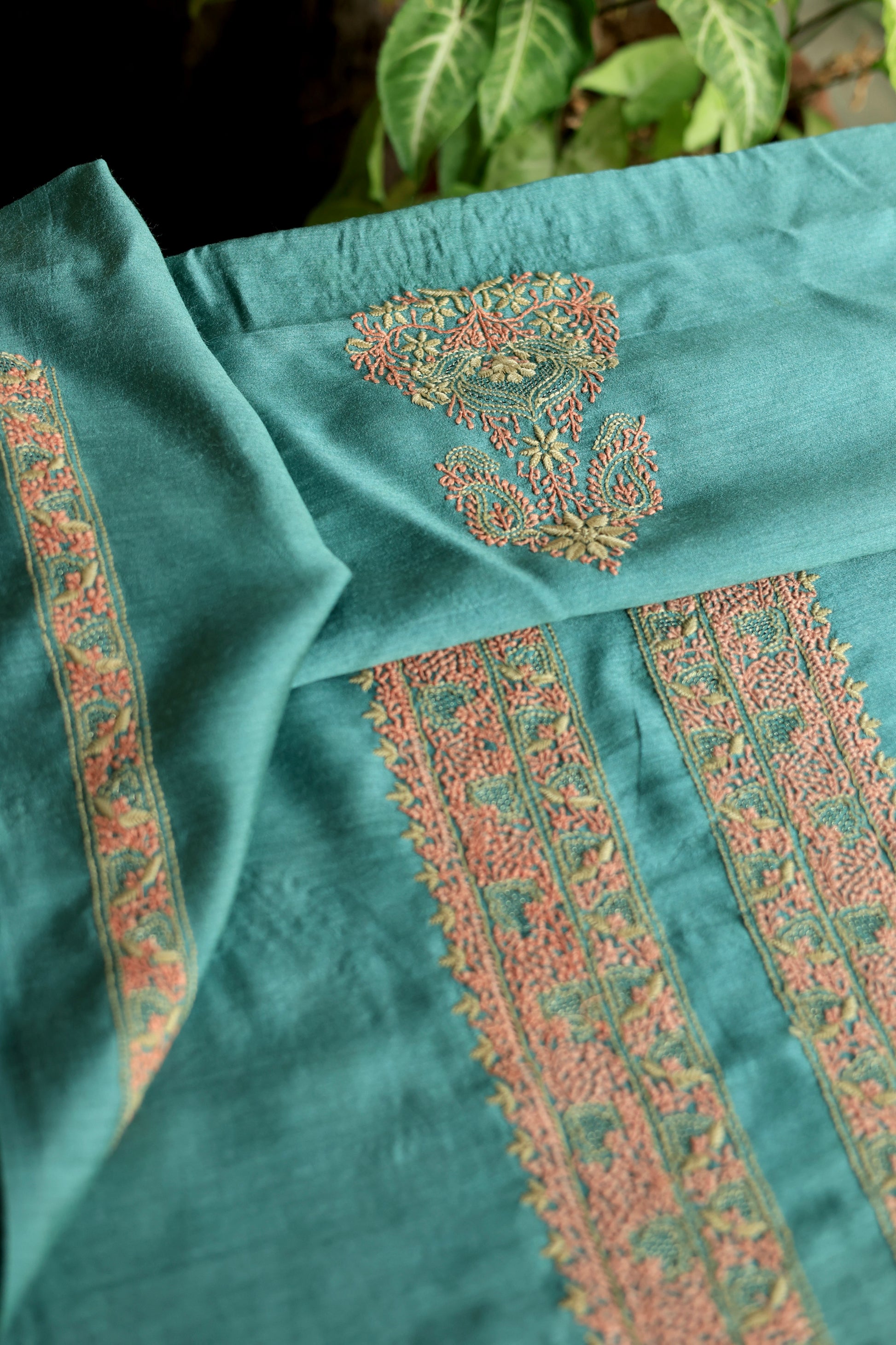 Teal Green Shade Moonga Silk Chikankari Men’s Kurta Fabric