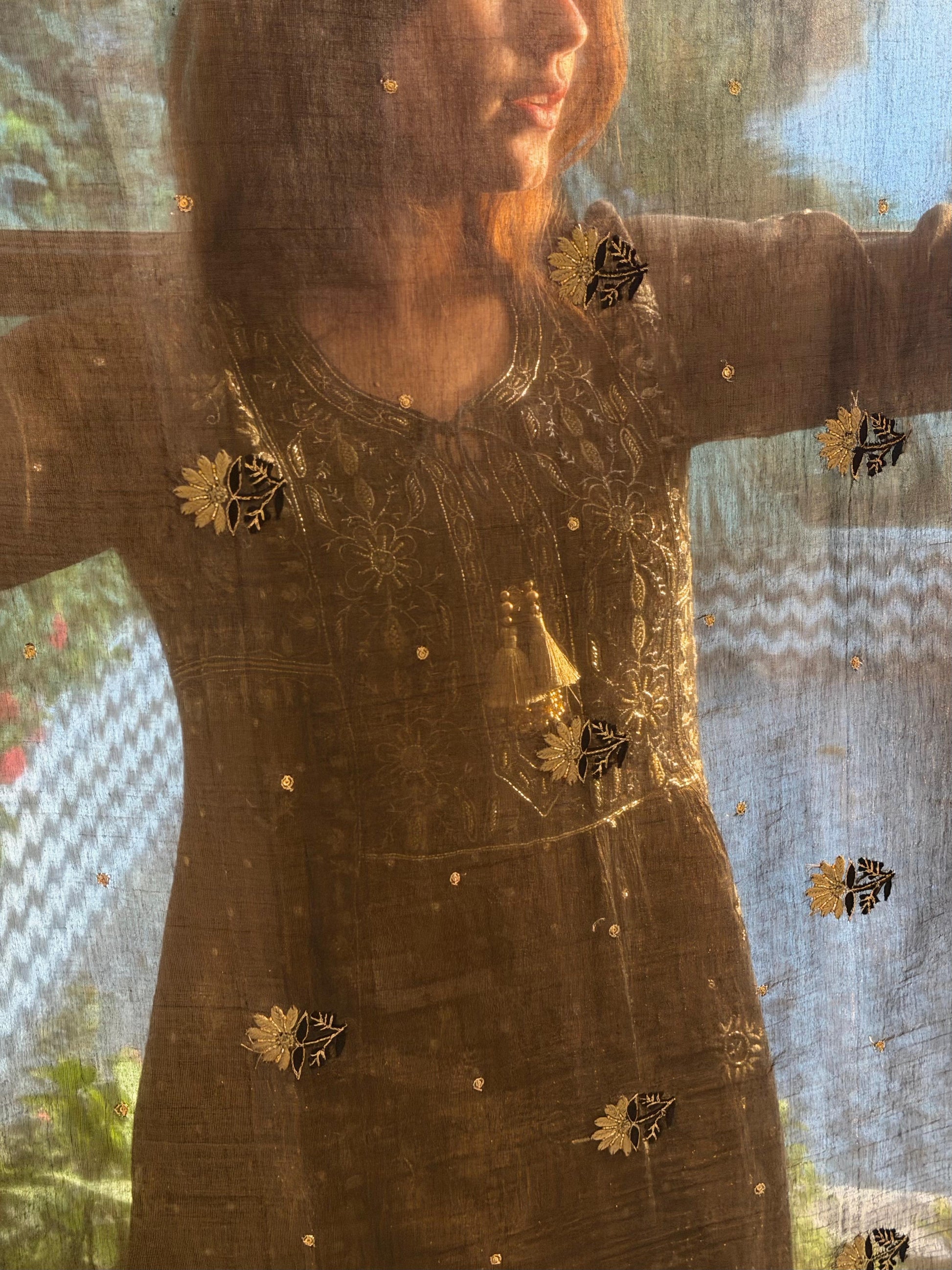 Each piece is crafted with intricate hand-embroidered Chikankari, featuring different traditional embellishments: