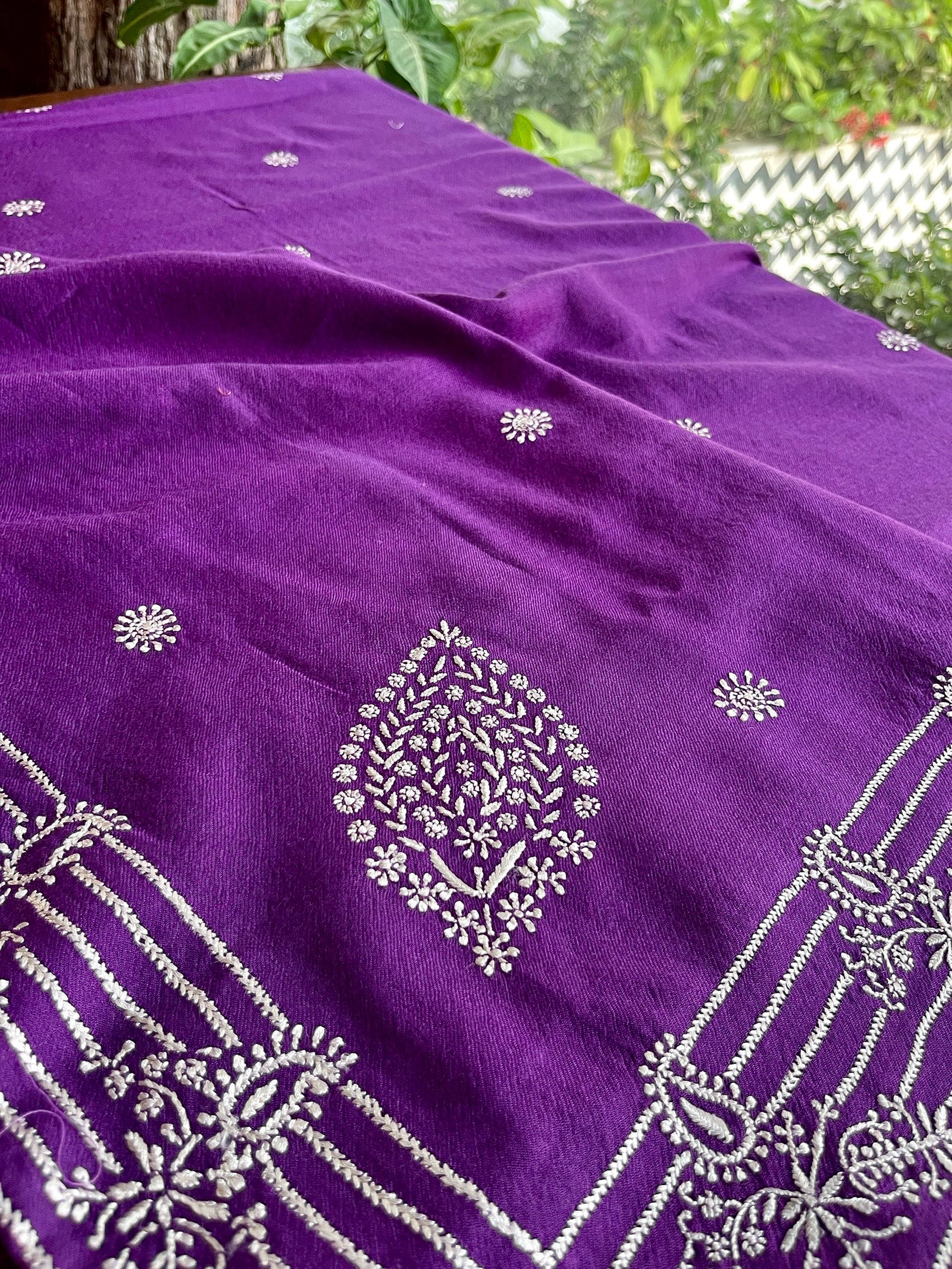 Warm Purple Shade Saman Pashmina Resham Thread Chikankari Shawl