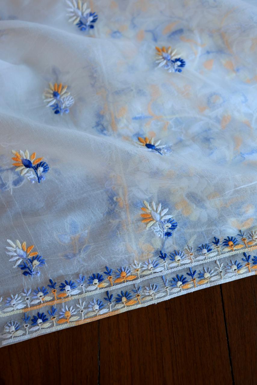 White Shade Organza Silk Chikankari Unstitched Fabric