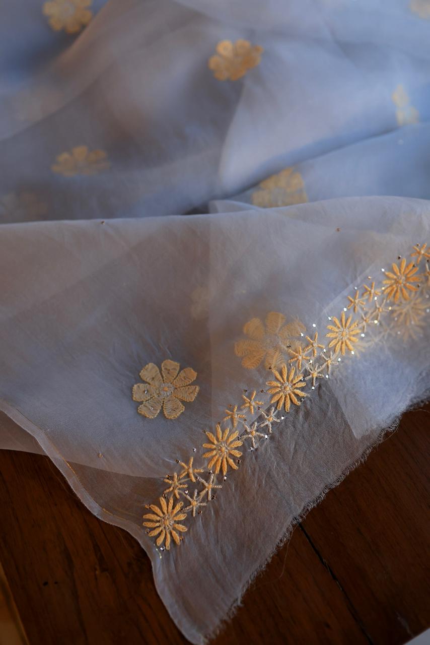 Elegant Chikankari Noor Organza range is perfect for day and for light evening complementing with Chikankari and shadow work with mukaish kamdani.
