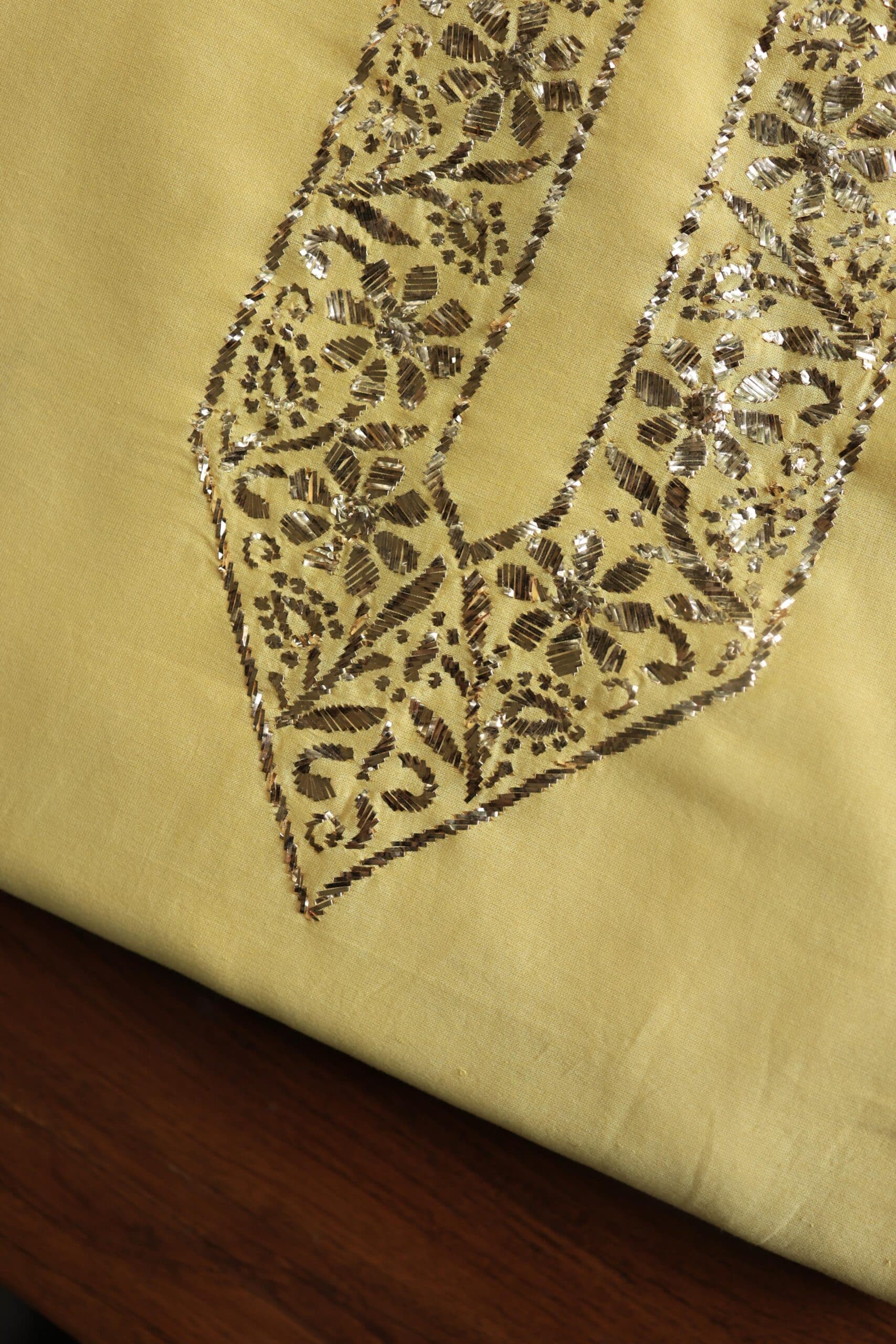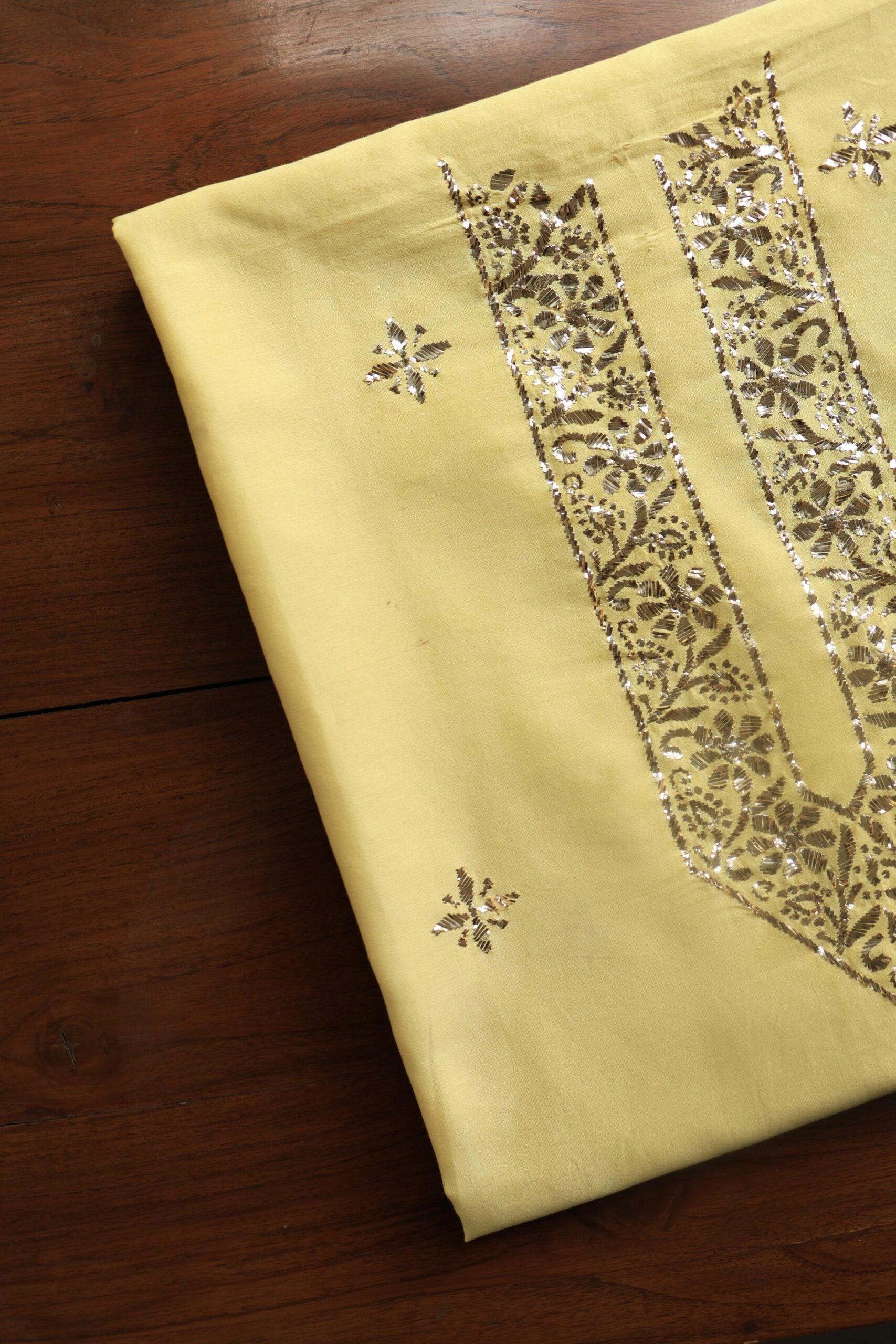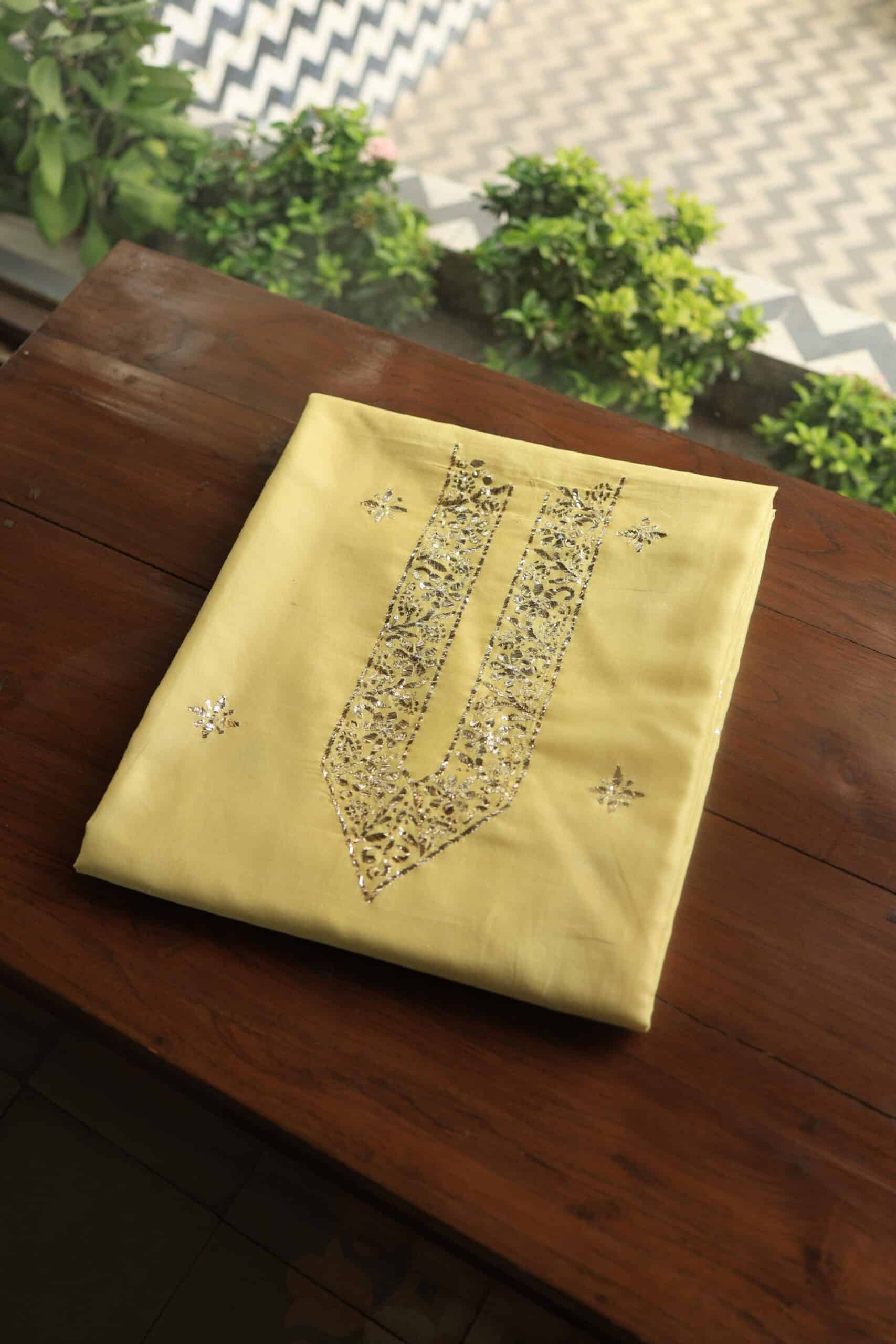 Yellow Chanderi Mukaish Badla Unstitched Chikankari Unisex Kurtas