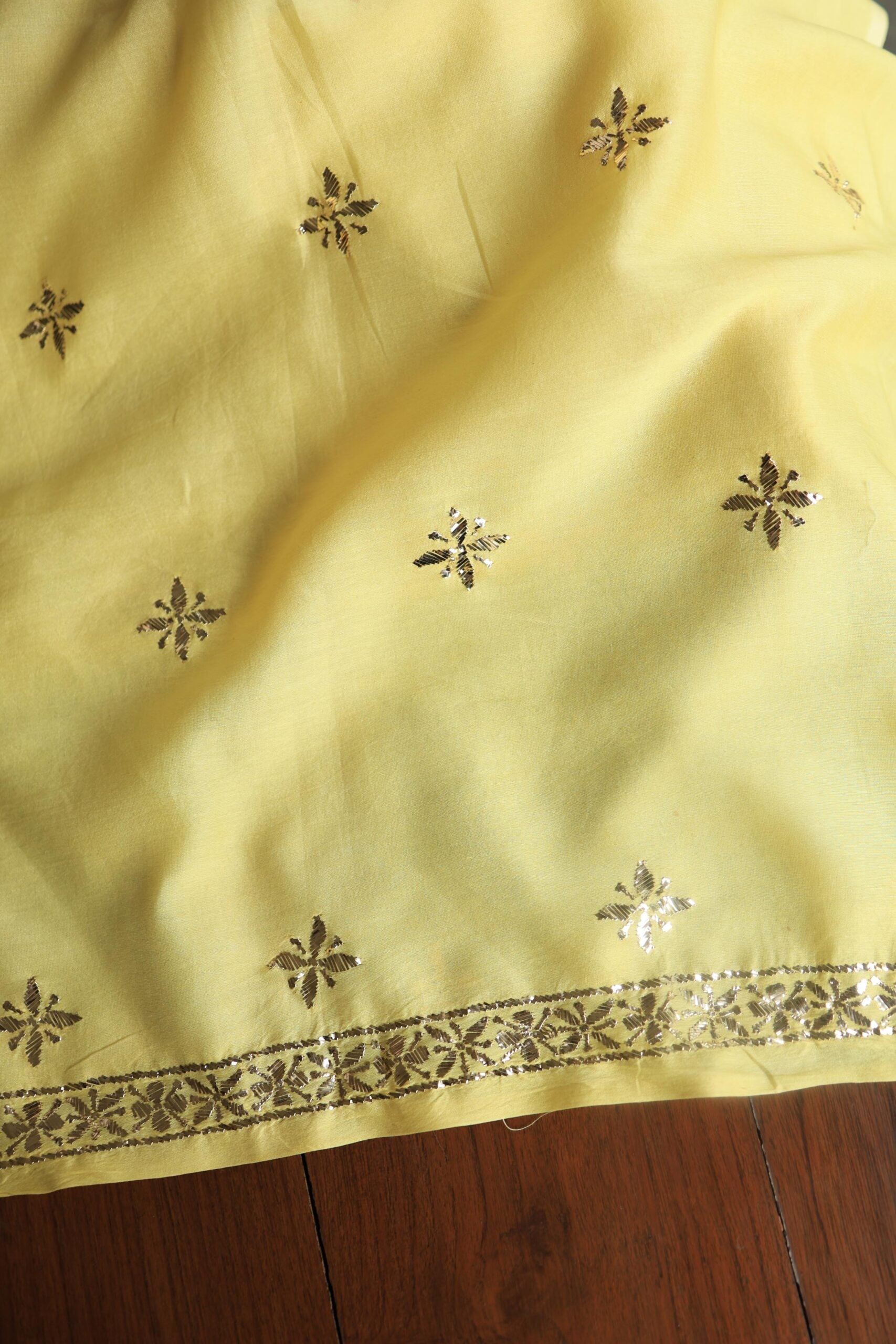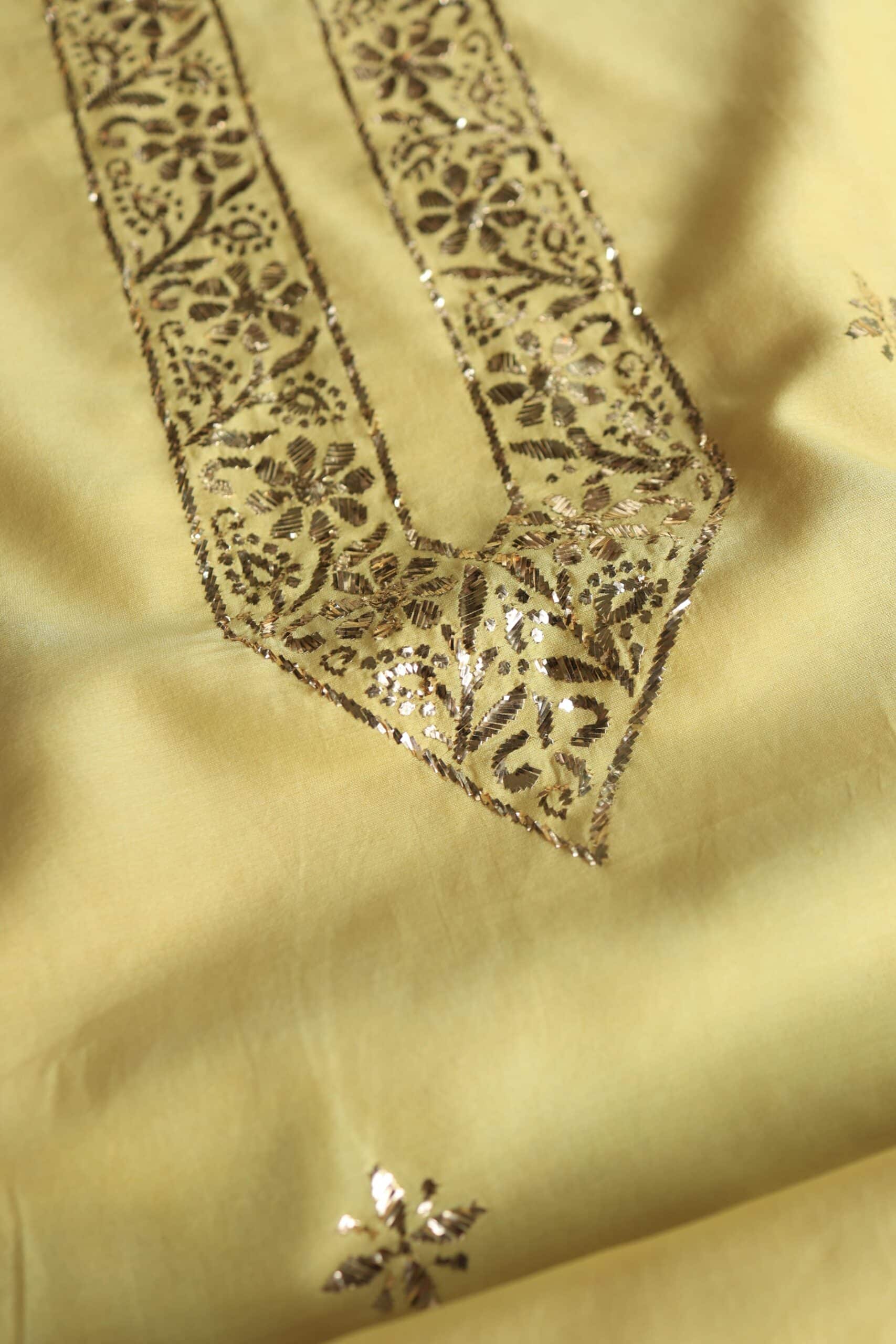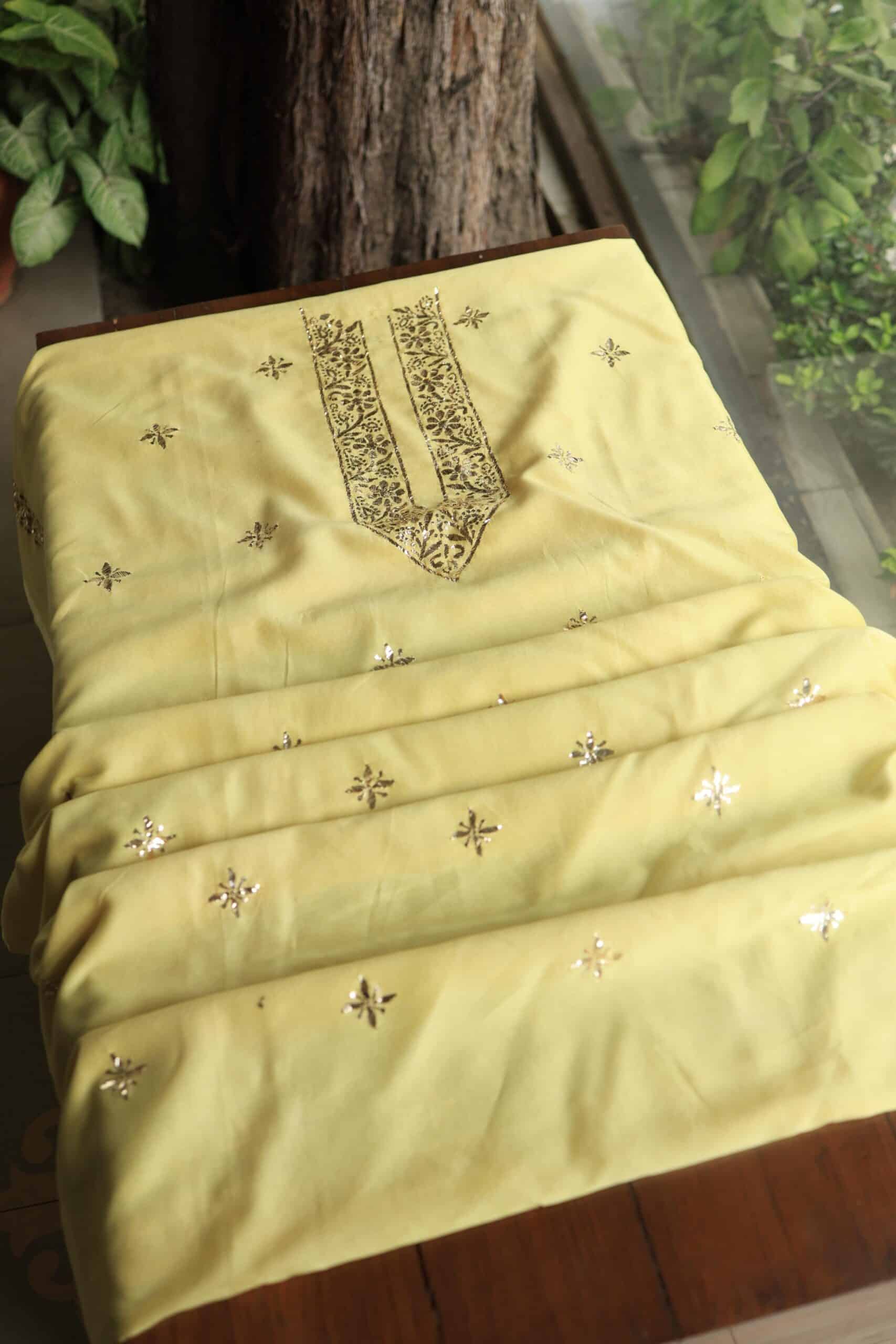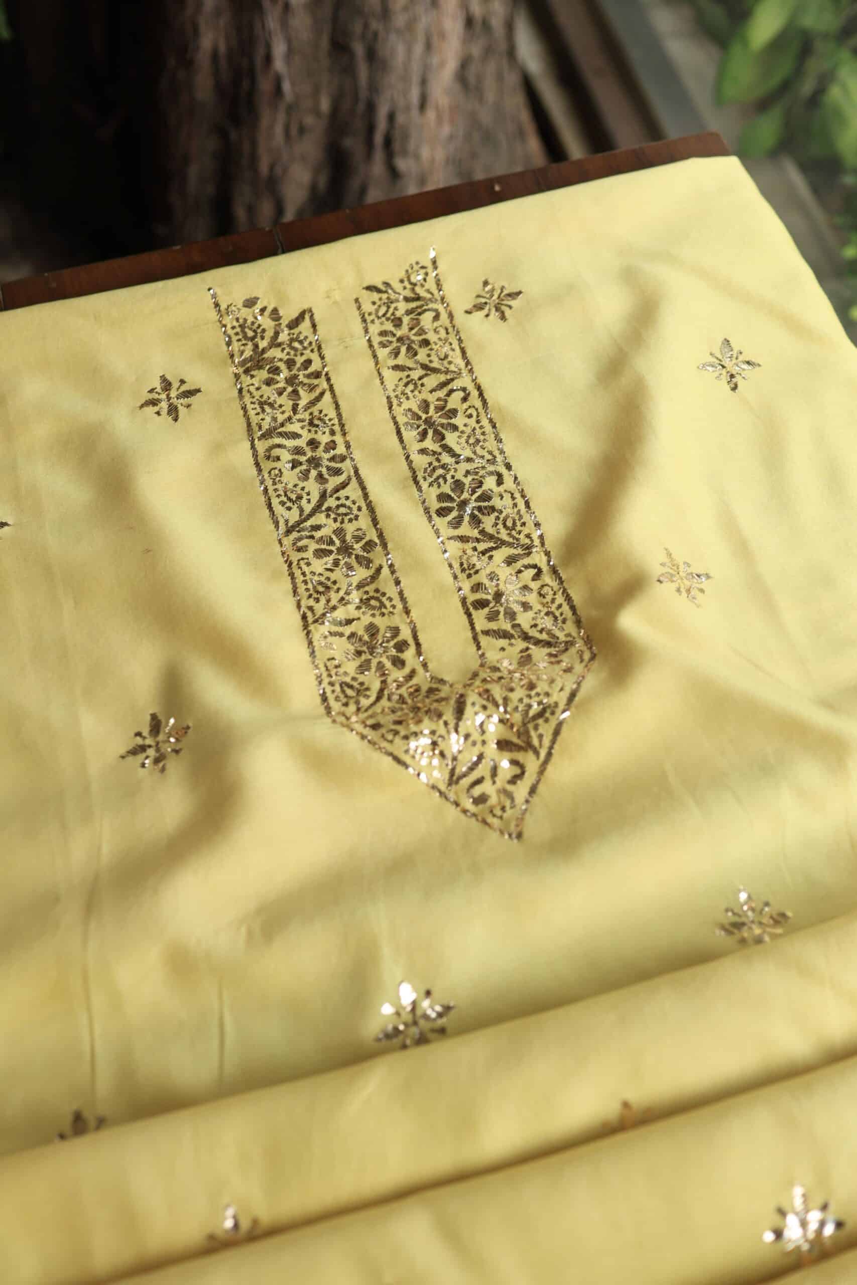 Yellow Chanderi Mukaish Badla Unstitched Chikankari Unisex Kurtas