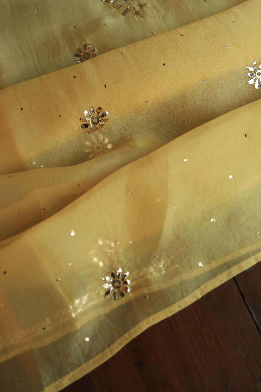 Yellow Shade Noor Organza Silk Chikankari Unstitched Kurta Dupatta Set