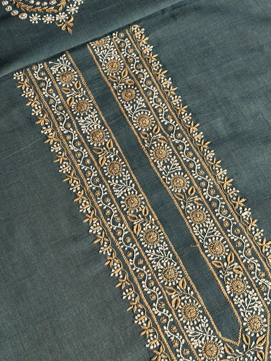Teal Green Shade Moonga Silk Chikankari Men’s Kurta Fabric