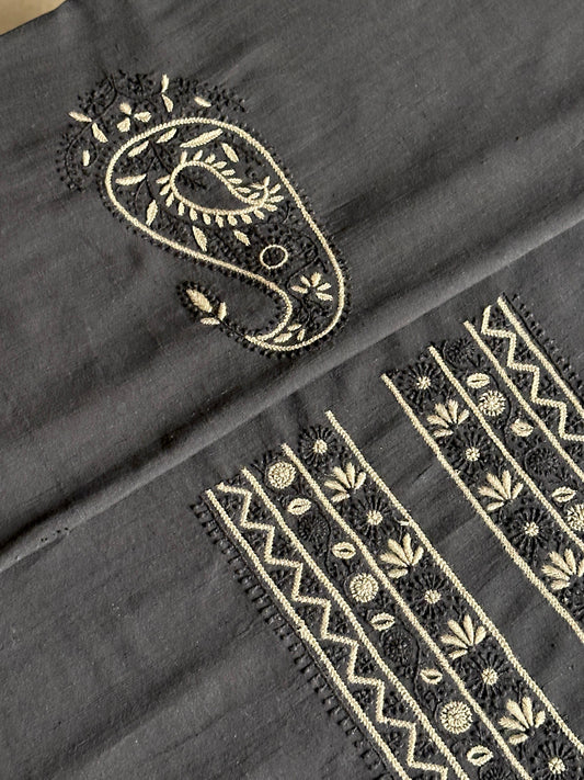 Slate Grey Shade Noor Organza Silk Chikankari With Kamdani Fabric