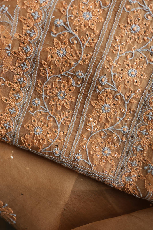 Fawn Shade Organza Silk Chikankari Unstitched Fabric