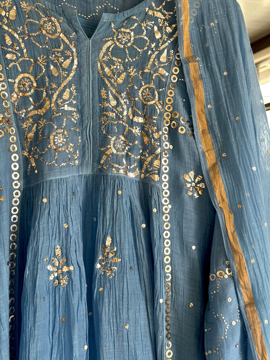 Powder Blue Shade Mukaish Mul Chanderi Silk Dress